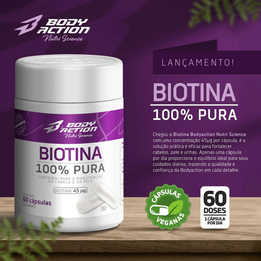 Kit 2x Biotina 100% Pura Pote 120 Cápsulas Bodyaction