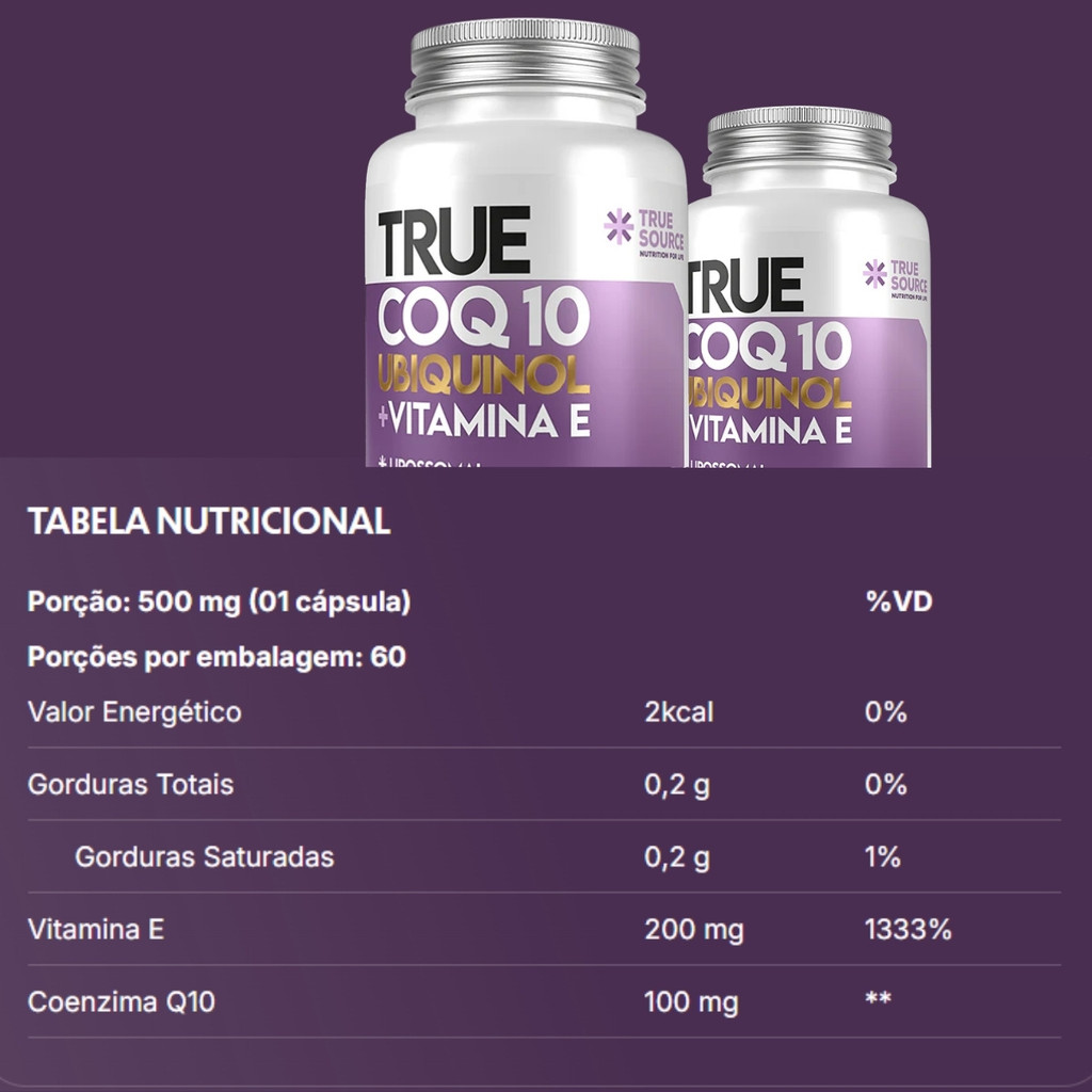 Coenzima Q10 Lipossomal C/Ubiquinol 60 cápsulas True Source