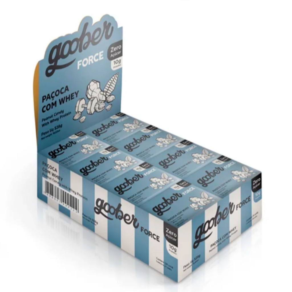 Paçoca Zero Açúcar Com Whey Caixa Com 24 Unidades 528g Goober