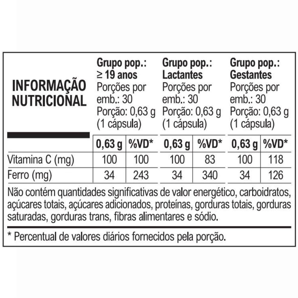 Ferro Plus Pote Com 30 Cápsulas De 500Mg Vitafor
