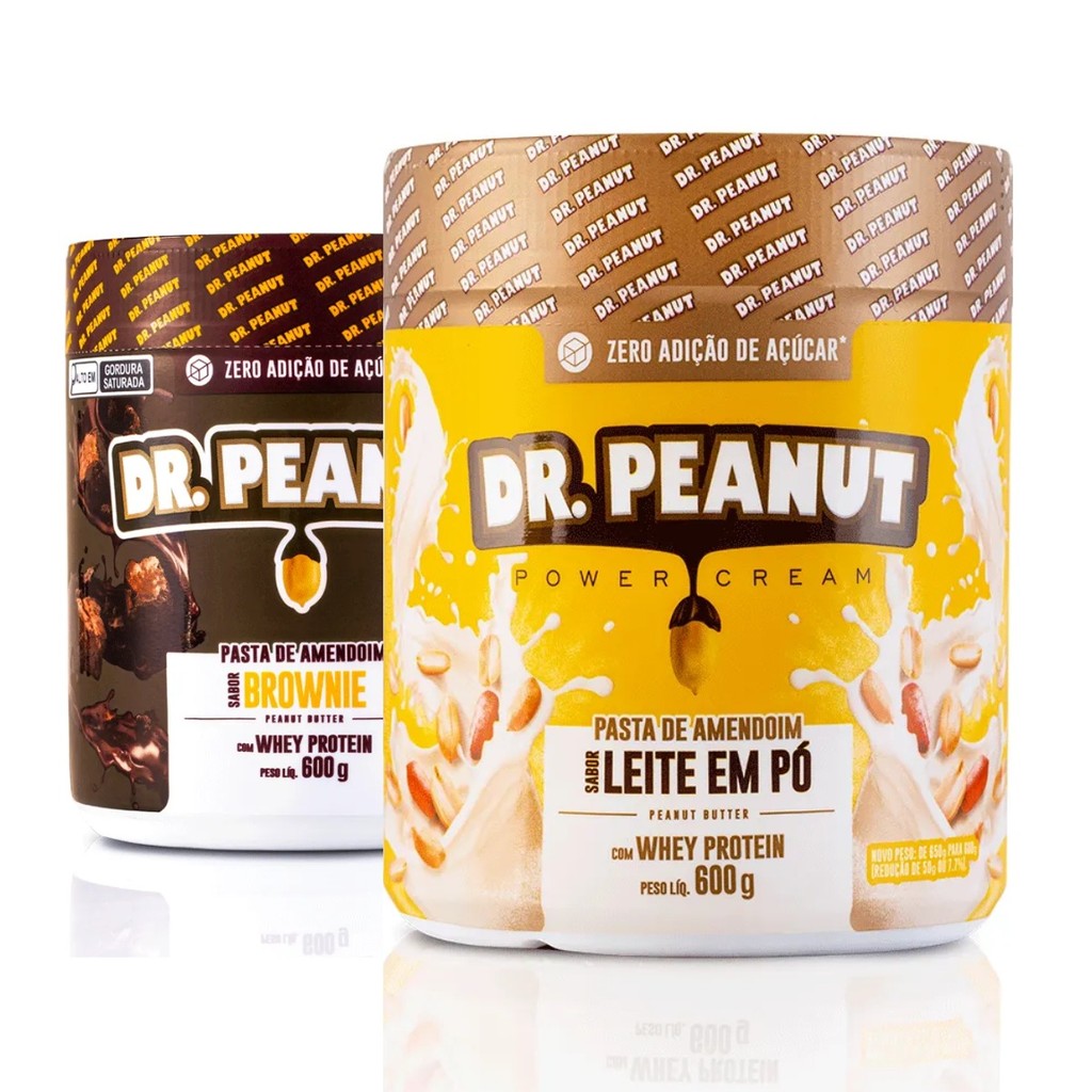 Kit 2x Pasta De Amendoim Com Whey Protein 600g Dr Peanut SABOR:LEITE EM PÓ + BROWNIE