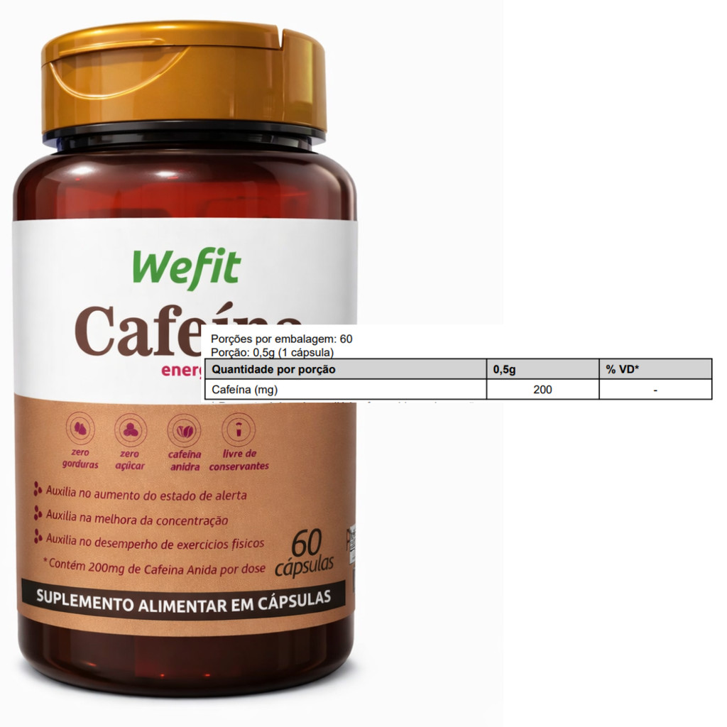 Cafeina 200mg Pote Com 60 Cápsulas Wefit