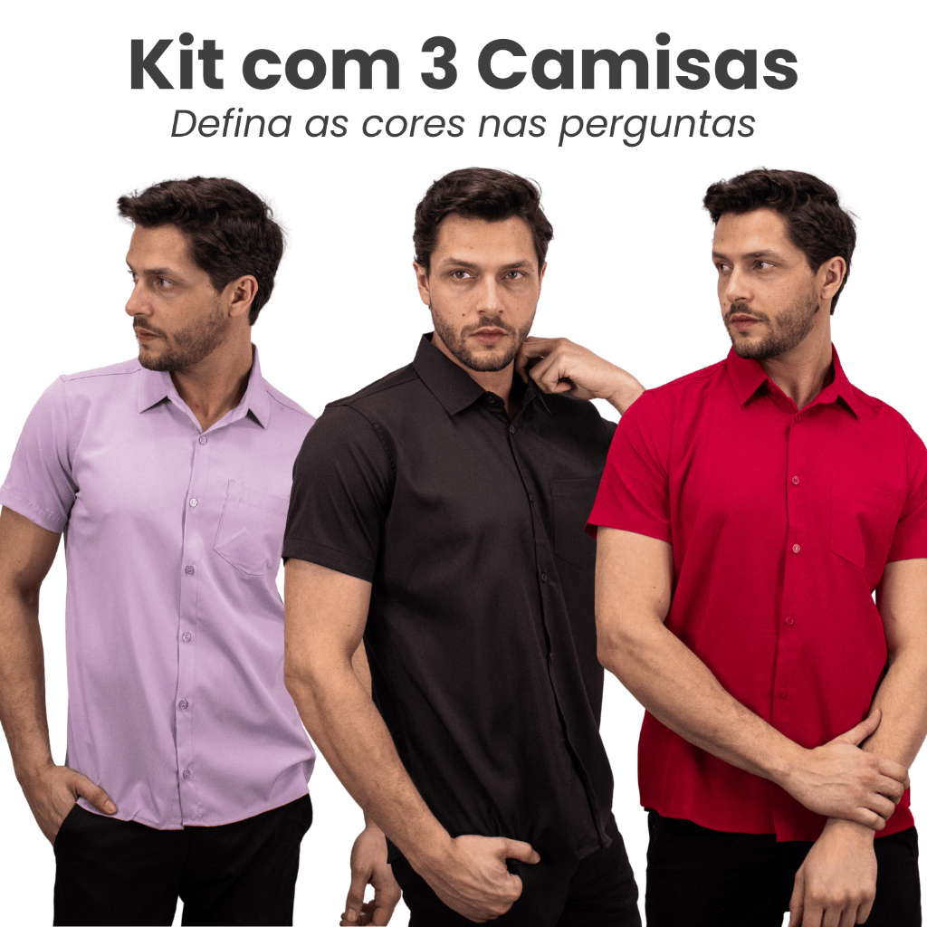 Kit 3 Camiseta Social Manga Curta Premium Luxo Cores Sortidas