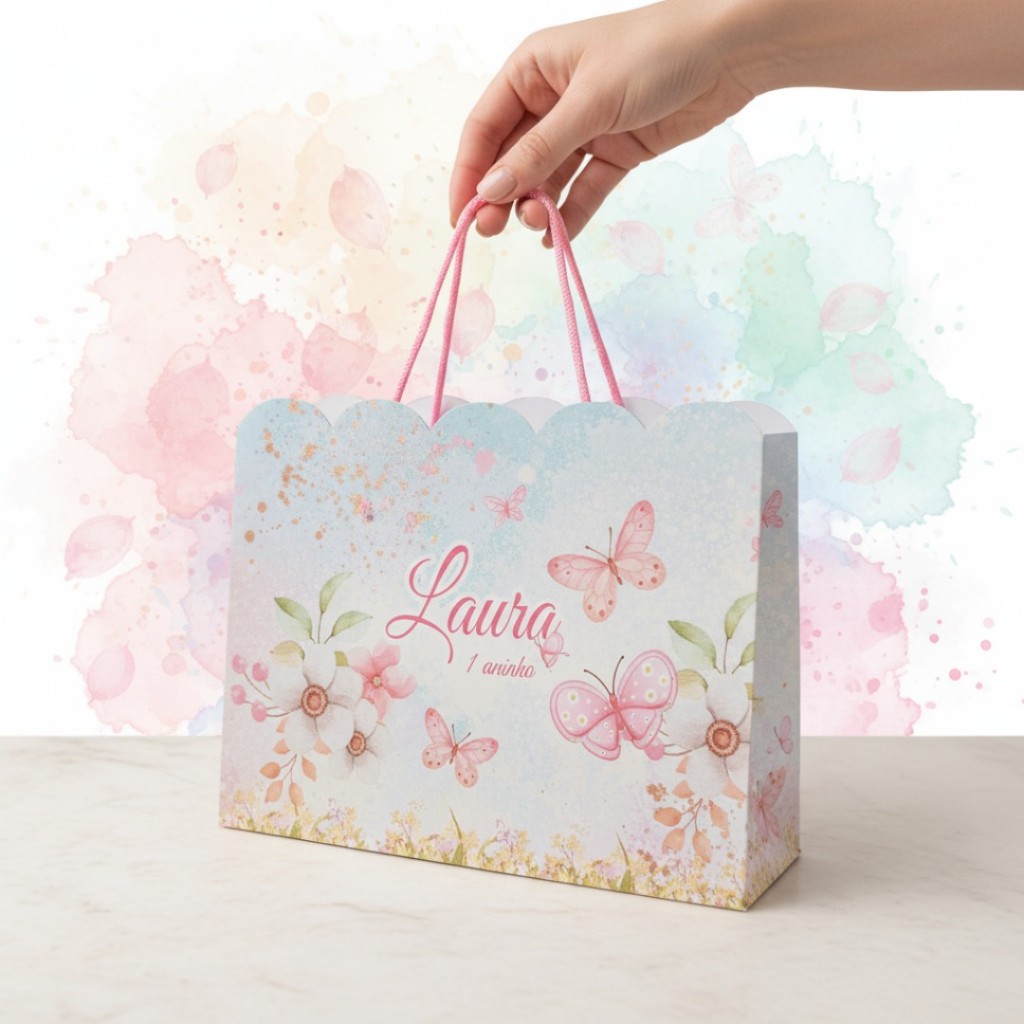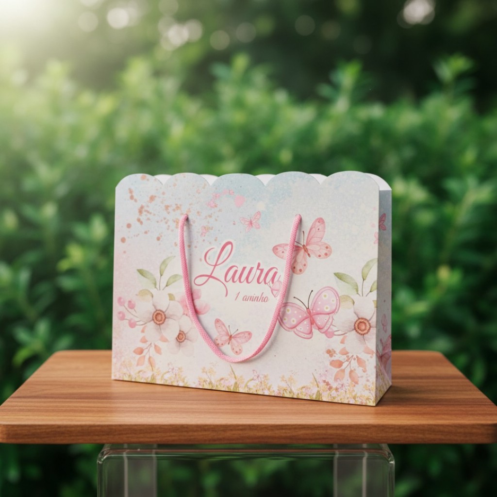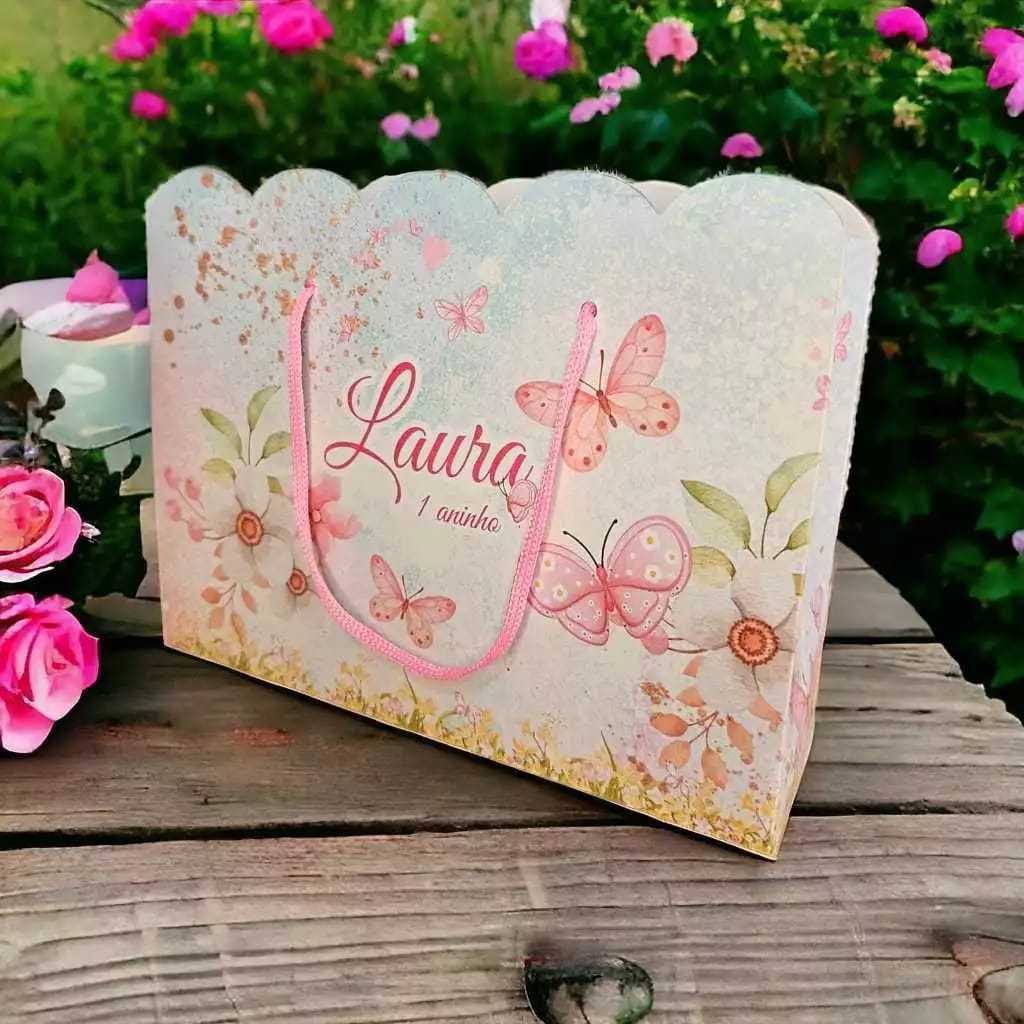 10 Sacolinhas Personalizadas Festa Jardim das Borboletas (20x15x5cm)