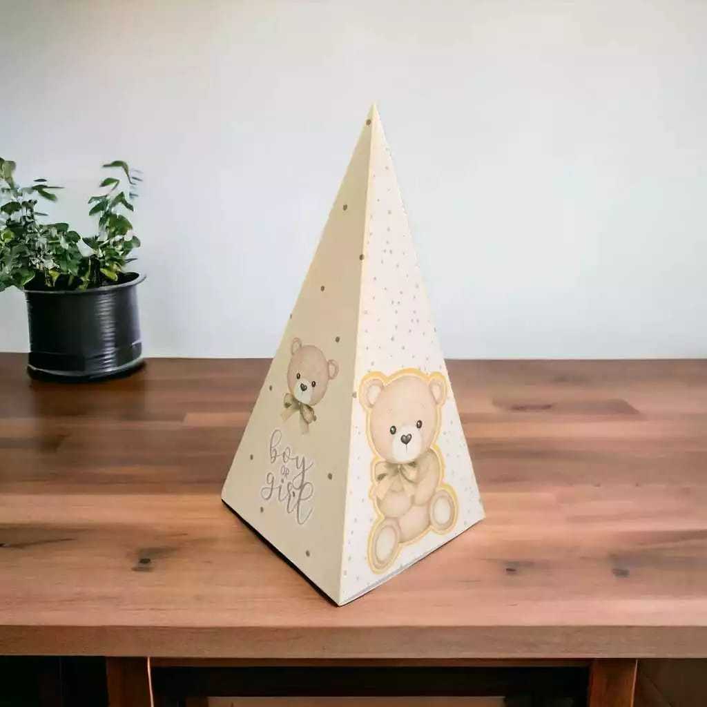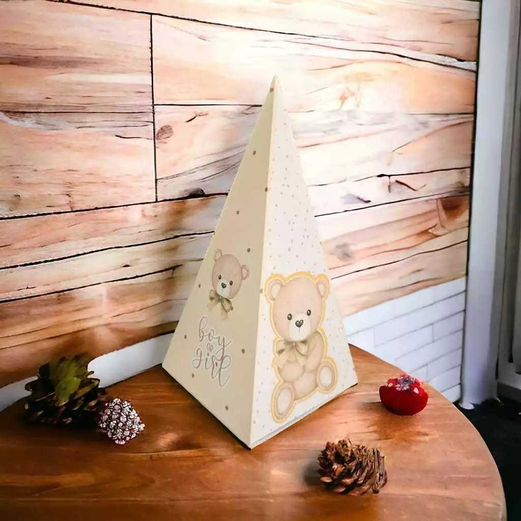 20 Caixinhas Pirâmide Cone Festa Chá de Bebê Ursinho Neutro