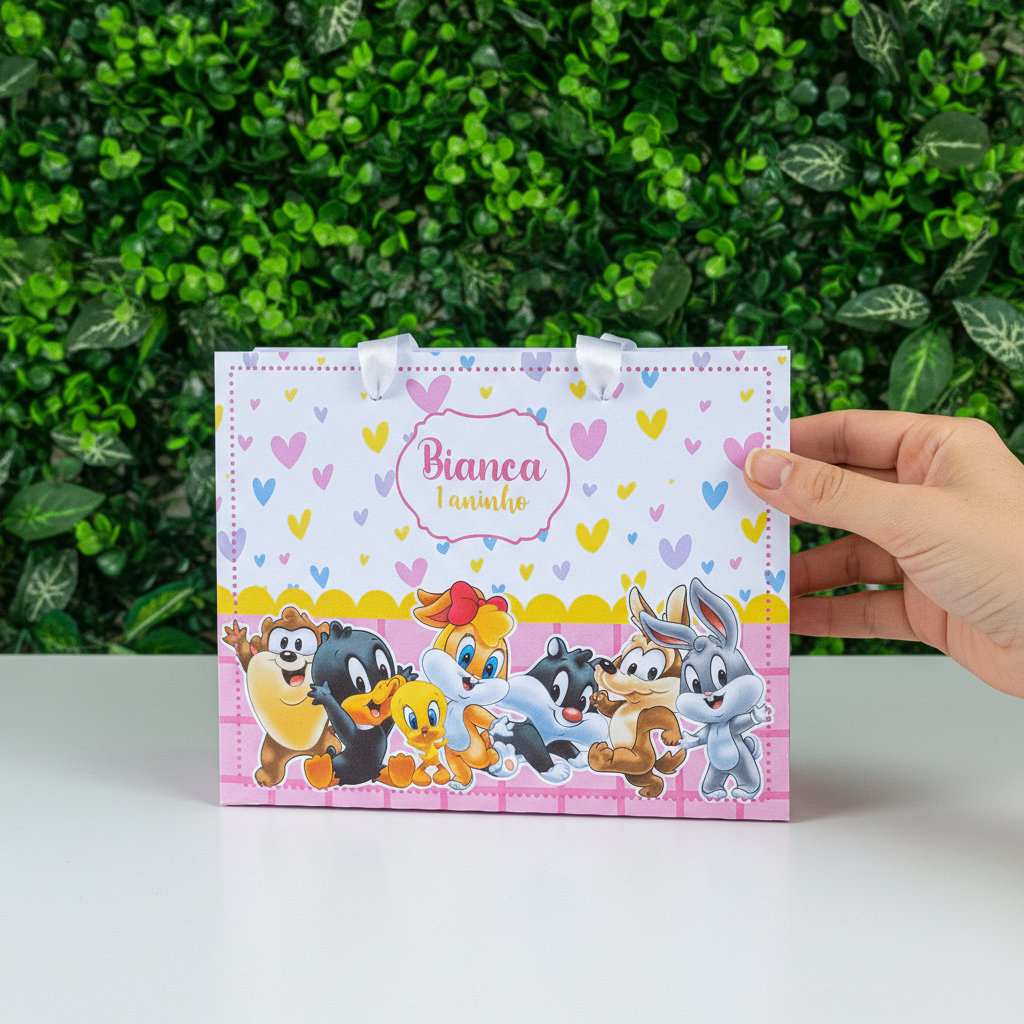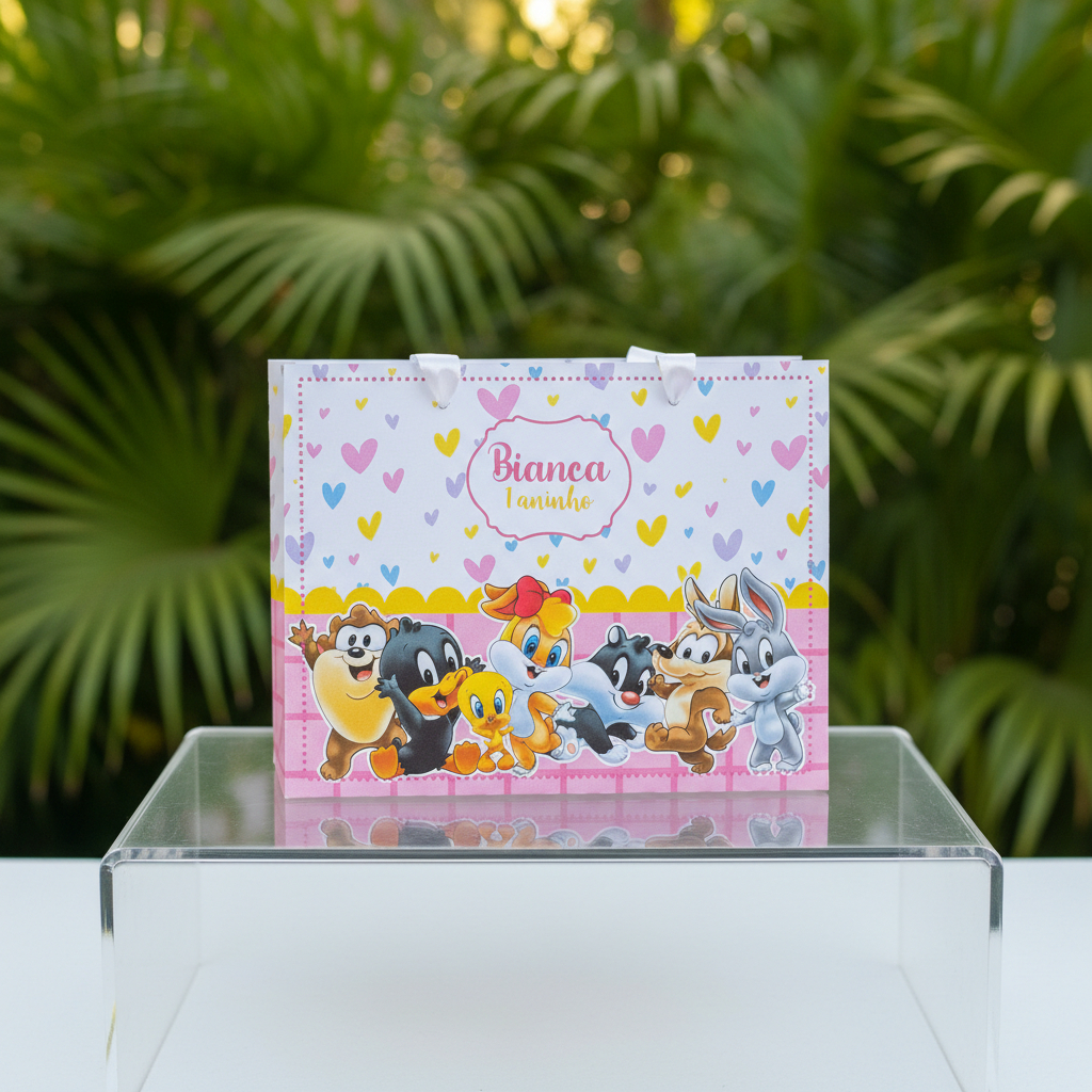 10 Sacolinhas Personalizadas (G) Festa Looney Tunes Baby Menina (20x16x6cm)