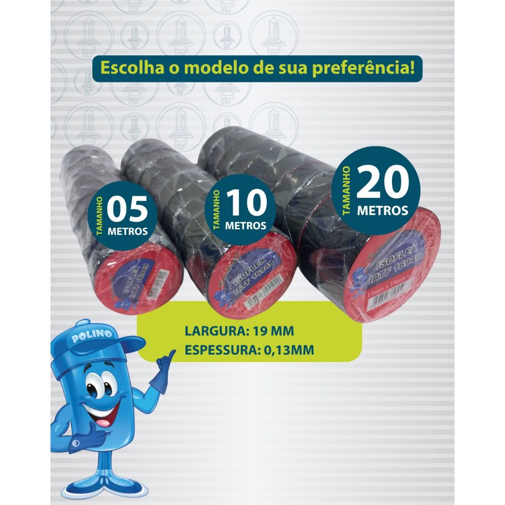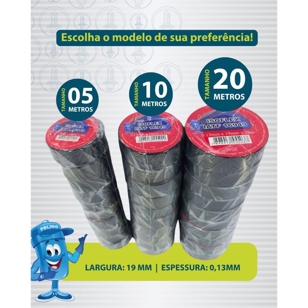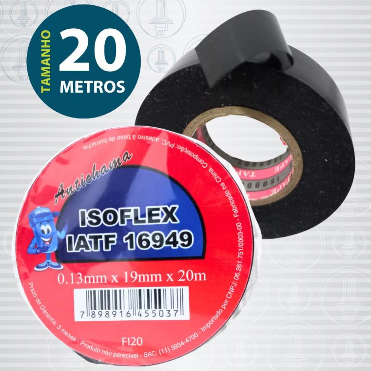 Fita Isolante Anti Chama Isoflex - 10 Metros 20 Metros e 5 Metros - largura 19mm