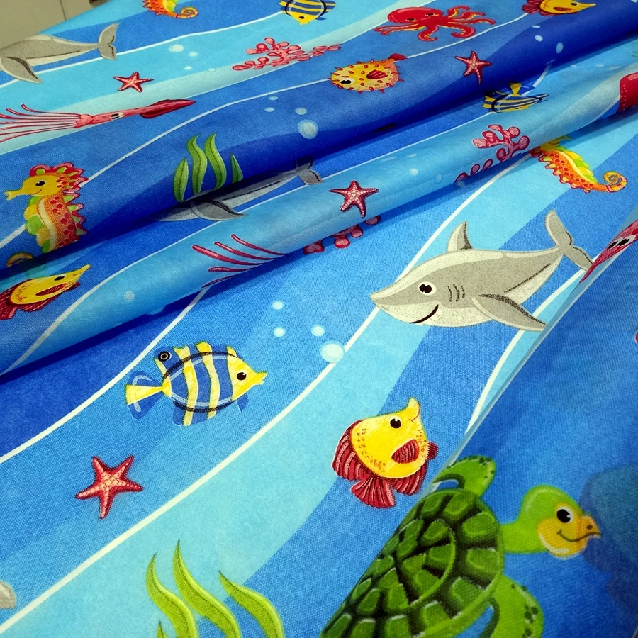 TNT Estampado Fundo do Mar Polvo Golfinho Tubarão Peixe 1,00m a 3,00m. Tecido para Festa, Decoração, ou Papel de Parede
