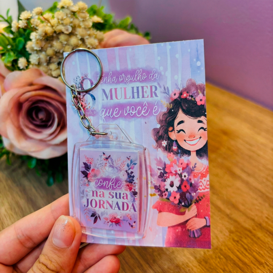 Kit 20/50/100 Chaveiros Dia da Mulher c/ Tag - Brinde Corporativo Lembrancinha Mimo - Envio Rápido