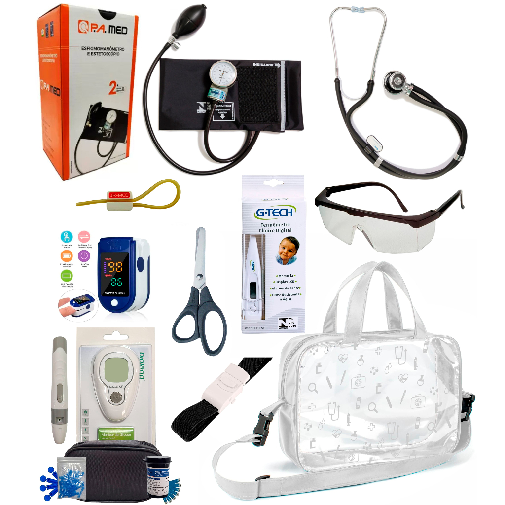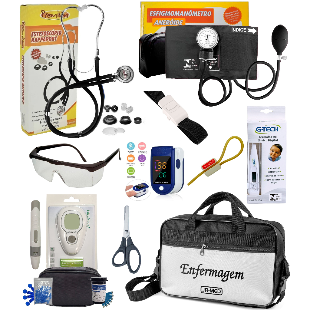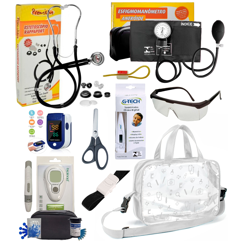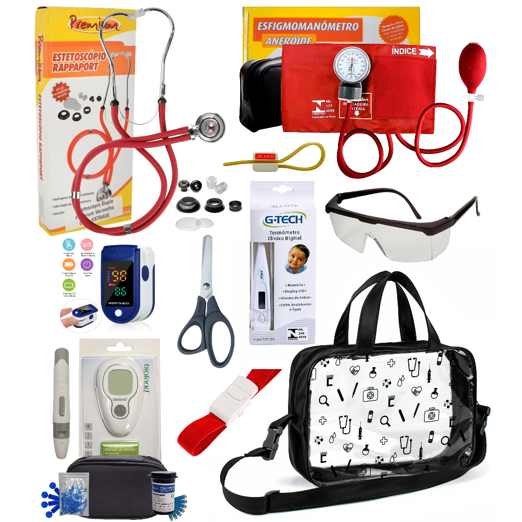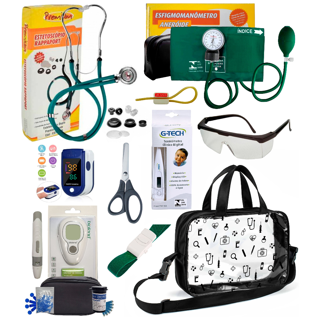 Kit Enfermagem Completissimo OXIMETRO E GLICOSÍMETRO + Bolsa Estágio VINHO AZUL PRETO PINK LILÁS