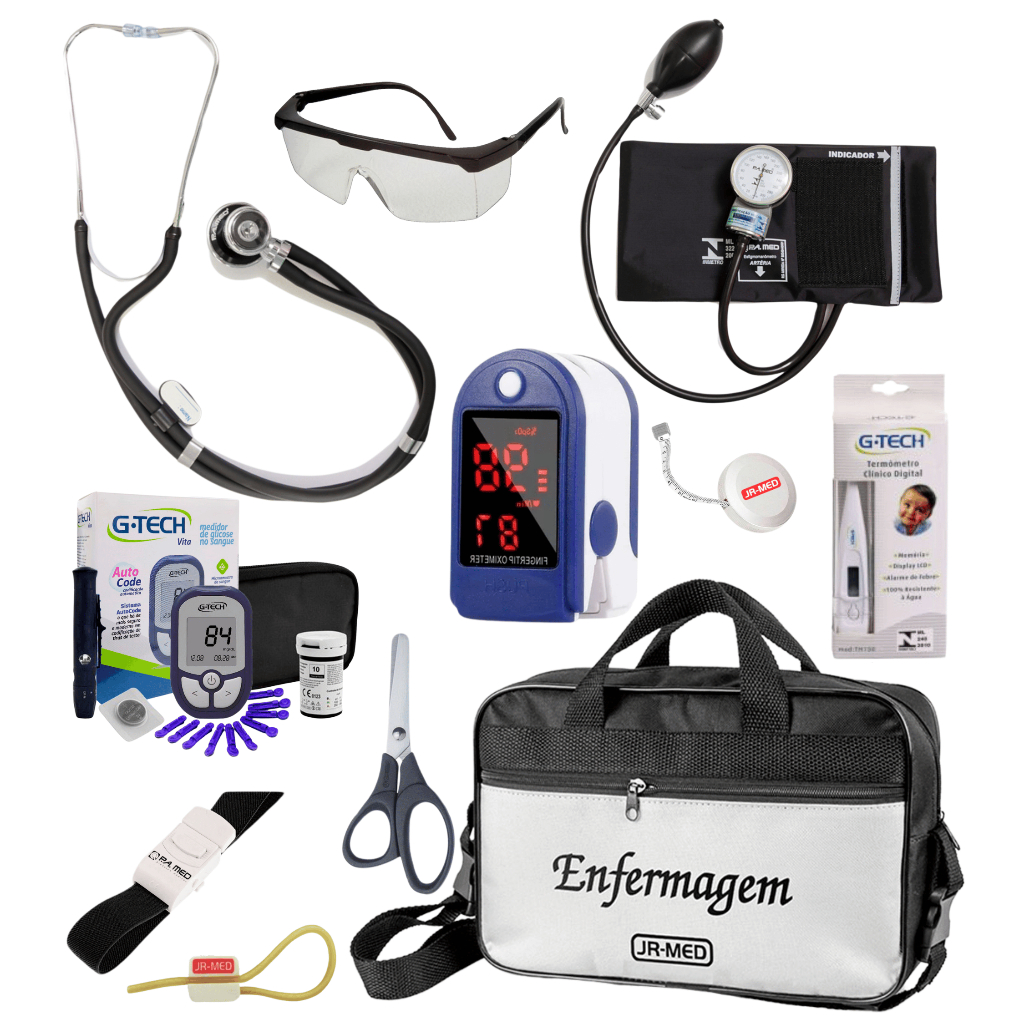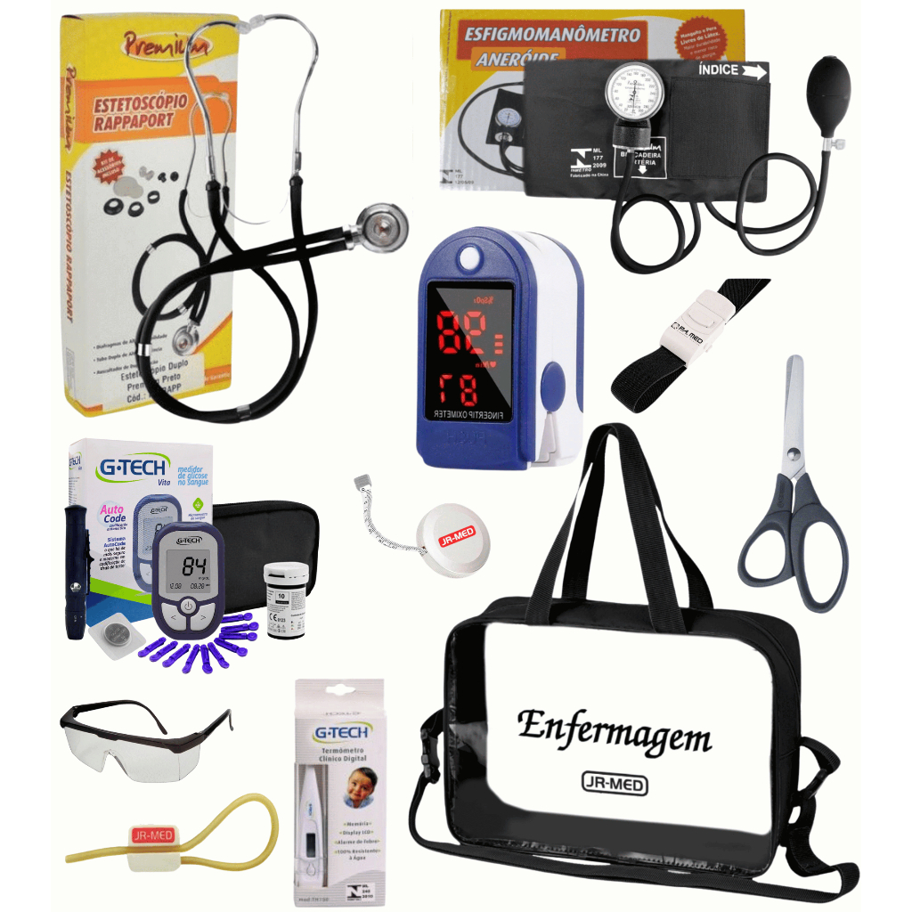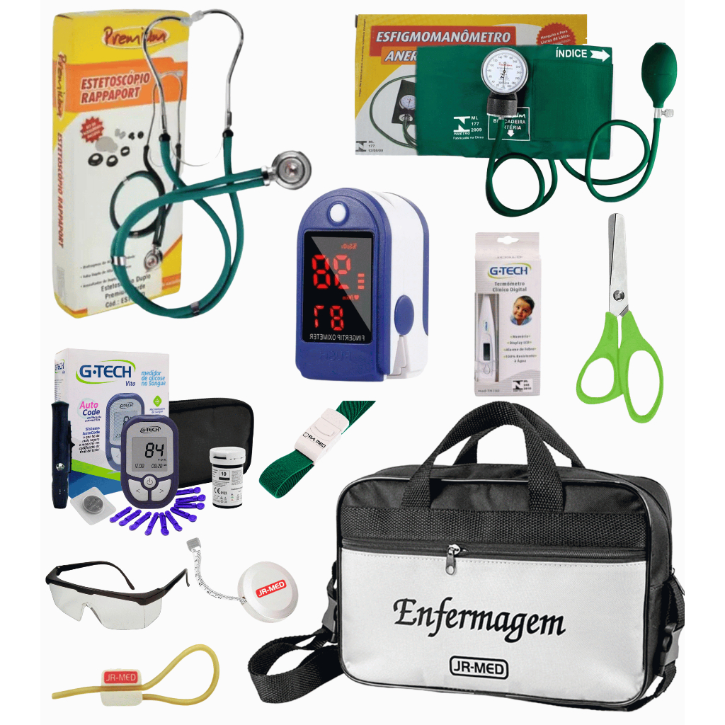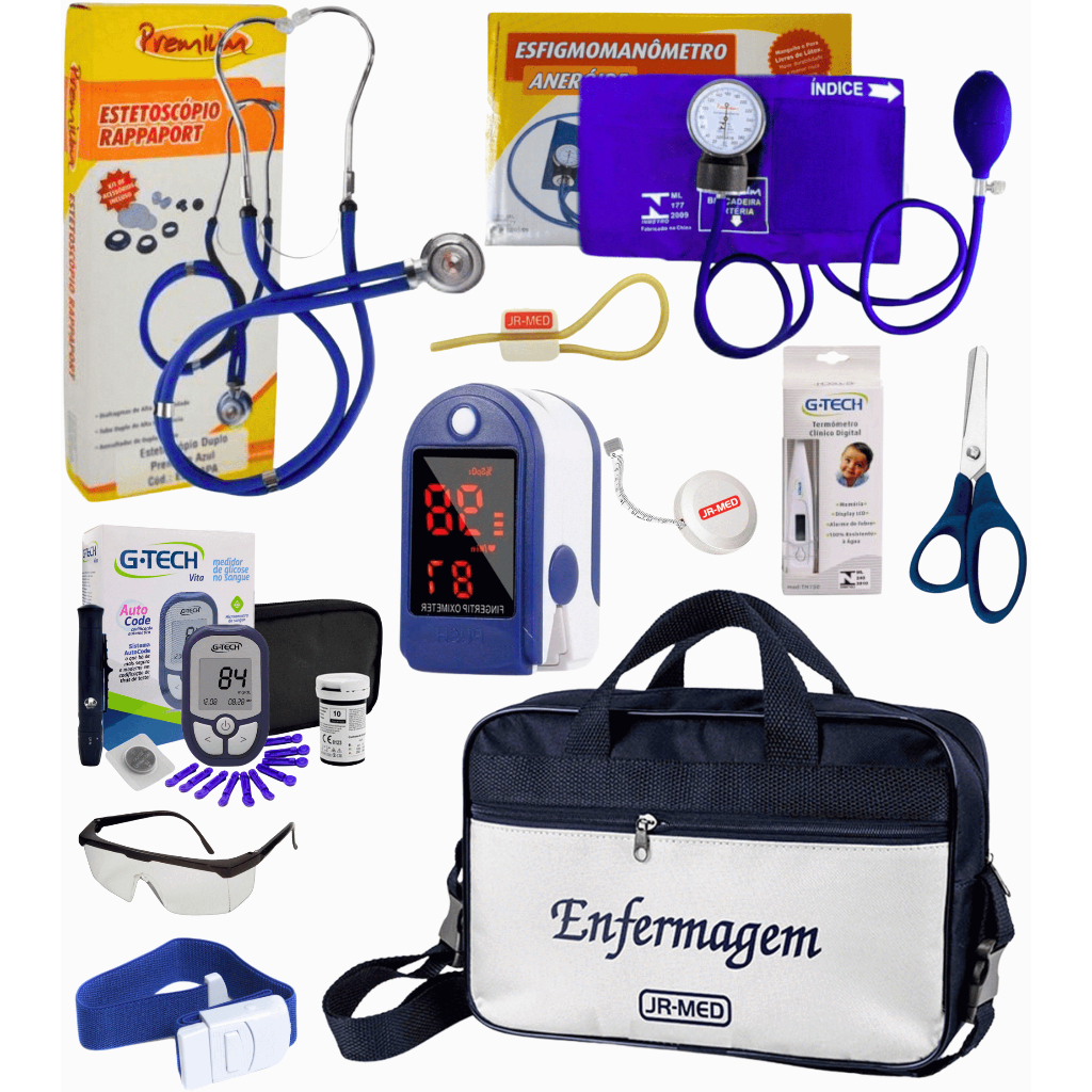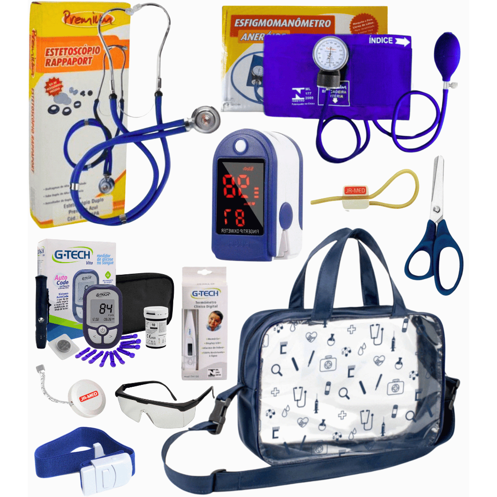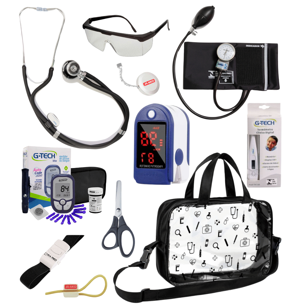 Kit Material de Enfermagem Aparelho de Pressão + Estetoscópio Duplo Premium para Estágio com Oximetro - VINHO ROSA PRETO
