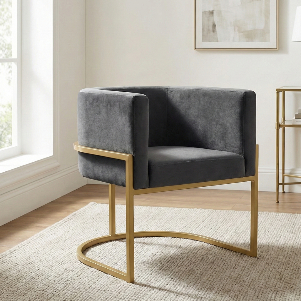 Poltrona Luna Decorativa Base de Ferro Dourada Conforto Diversos Ambientes