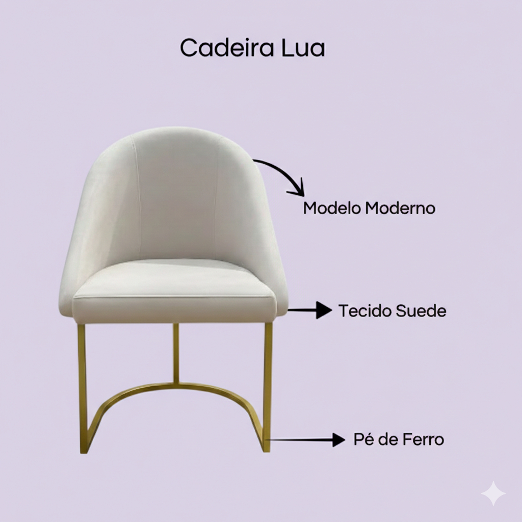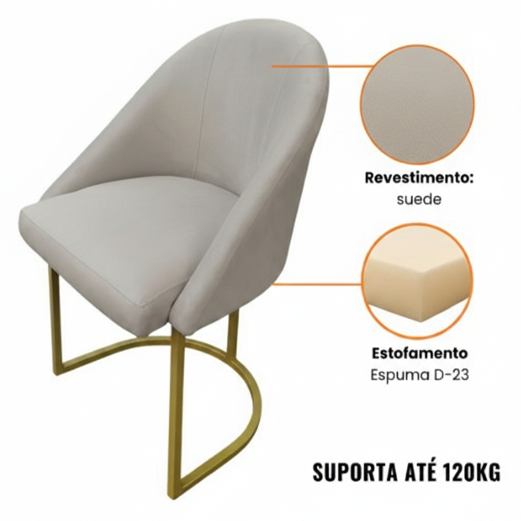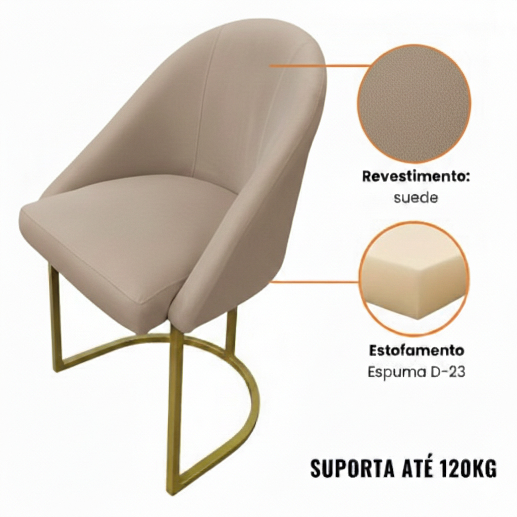 Cadeira Poltrona Decorativa Base Metálica Lua Sala, Escritório , Recepção Diversos Ambientes Suede