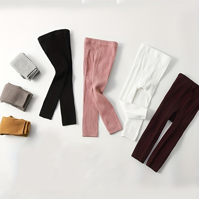 Leggings Casuais De Cor Sólida Para Meninas De 1 Peça : Meia-Calça De Malha Quente Outono E Inverno Estilo Combinado Con