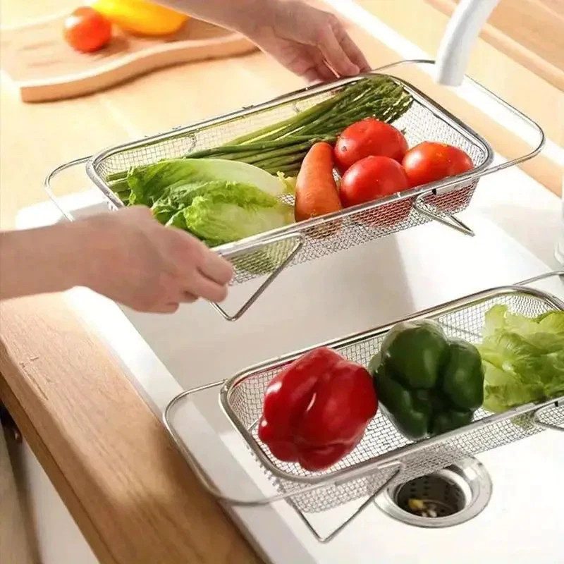 Escorredor de Louça Ajustável aço inoxidável Cozinha Para Pia Prateleira De Frutas E Legumes