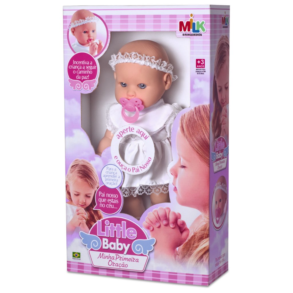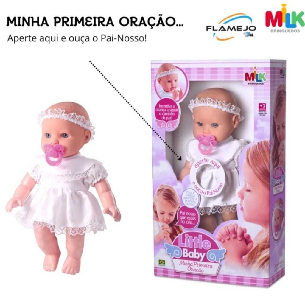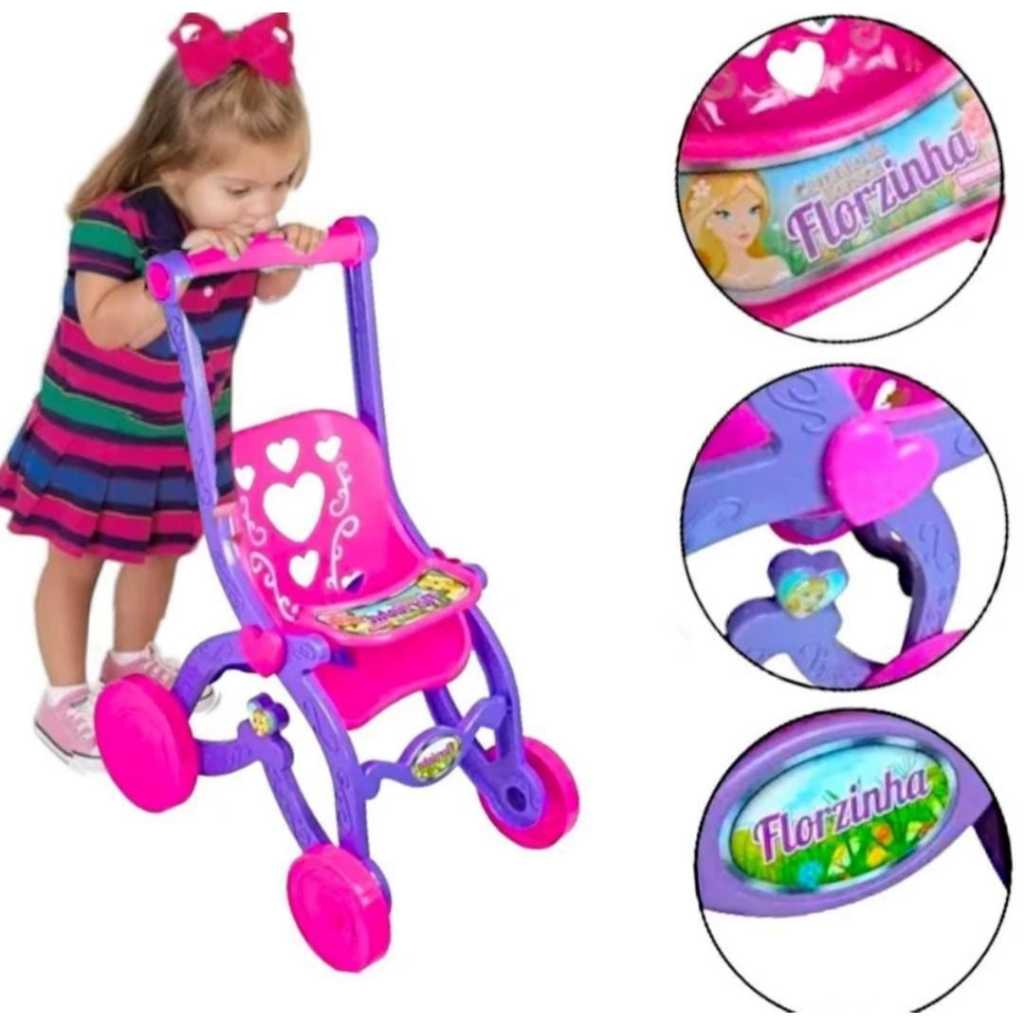 Boneca Minha Primeira Oração Reza o Pai Nosso com carrinho de passeio bebe para boneca Florzinha kit