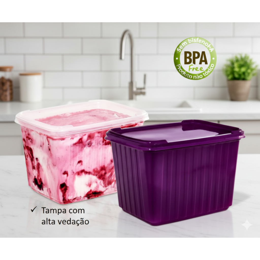 Pote sorvete açai 2 litros c/ tampa alta vedação 24 unidades BP Potes transparente / Roxo