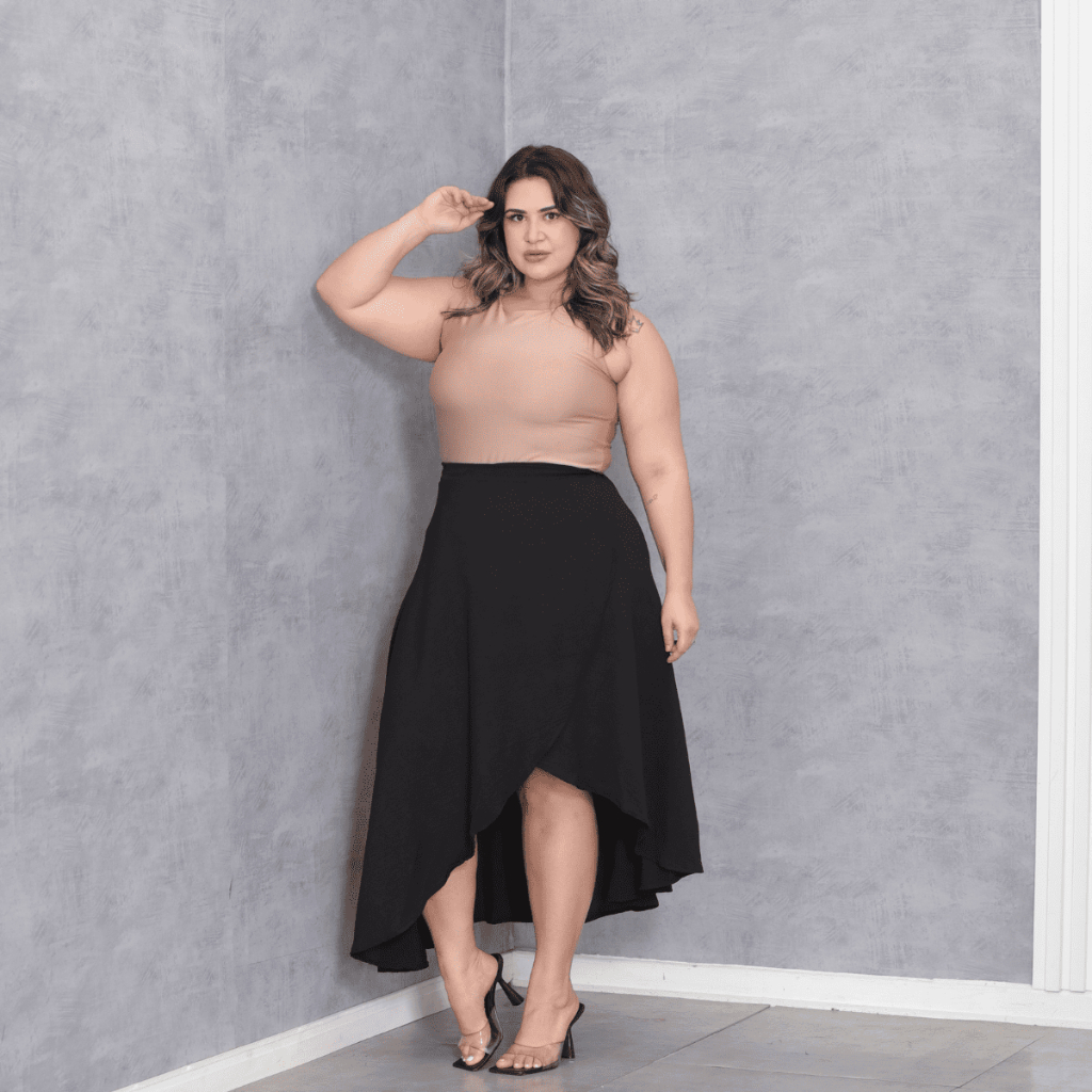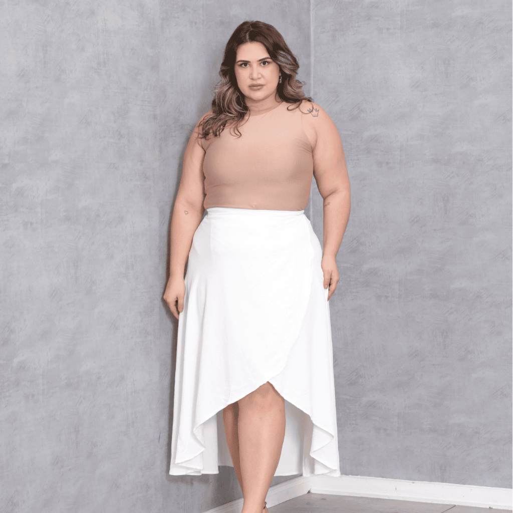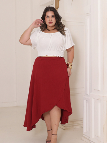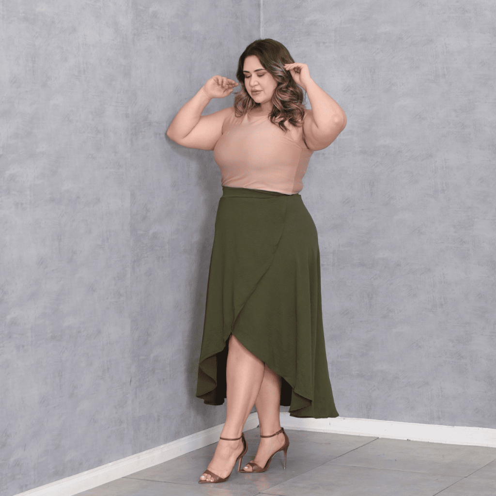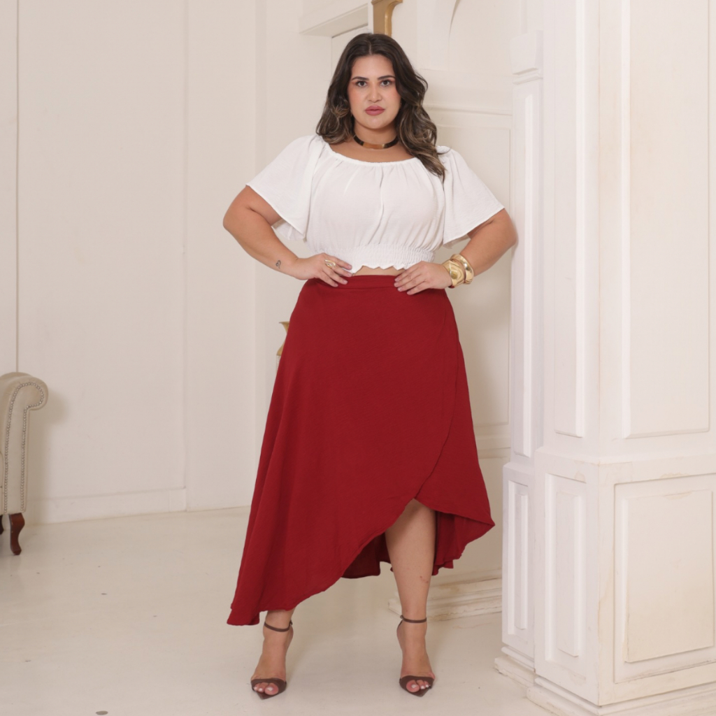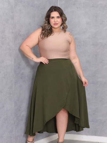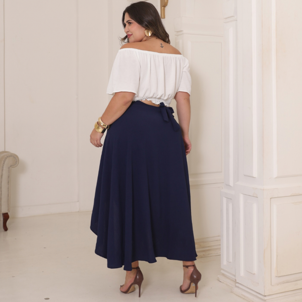 Saia Longa Envelope Transpassada Plus Size com Amarração Elegante Tendência Evangélica