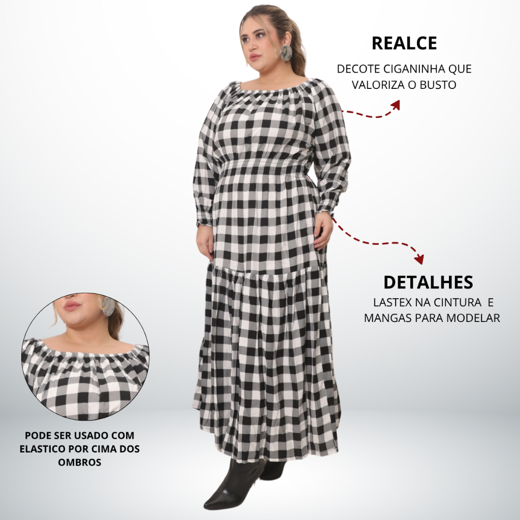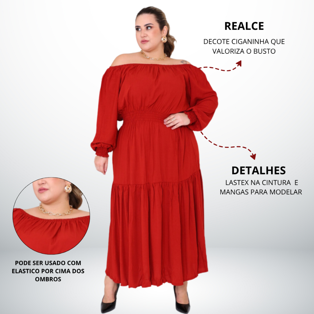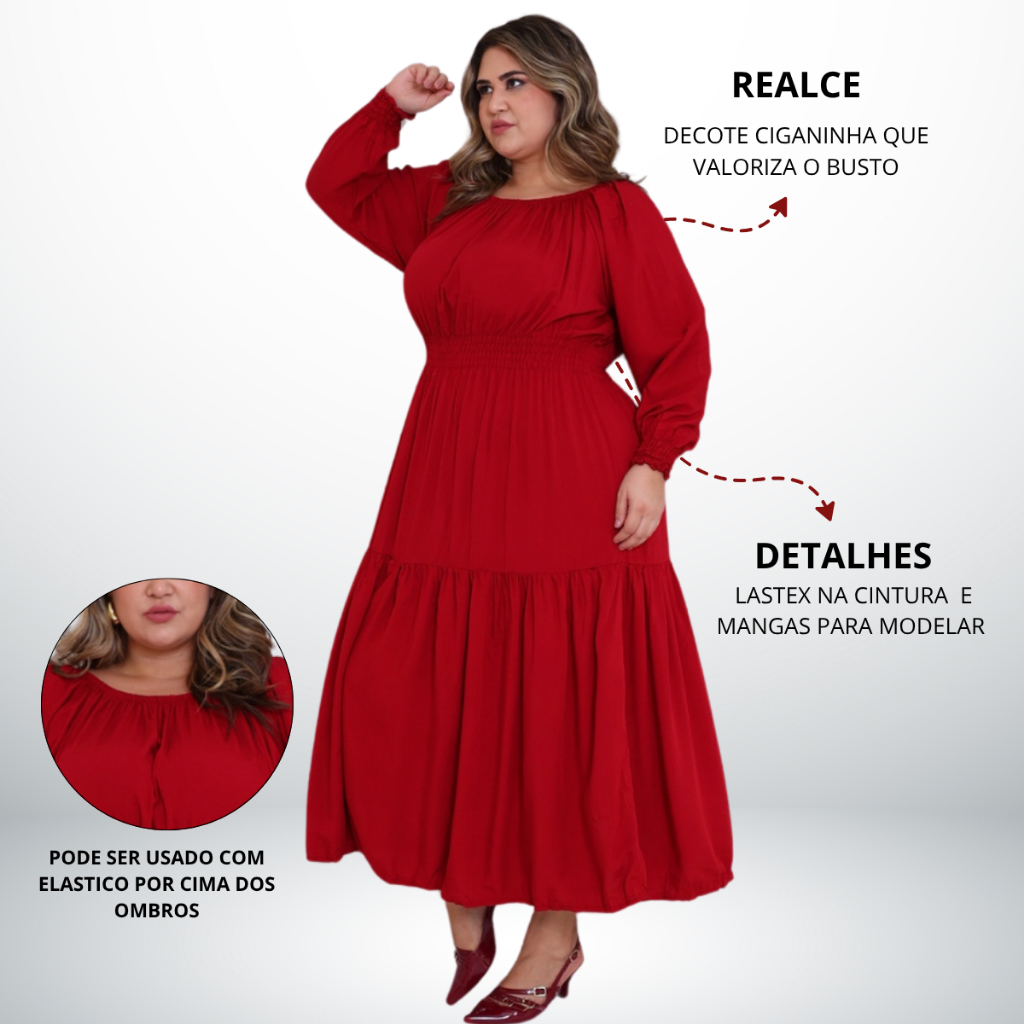 Vestido Feminino Longo Manga Longa Plus Size Moda Evangélica | Casual | Bufante | Outono/Inverno