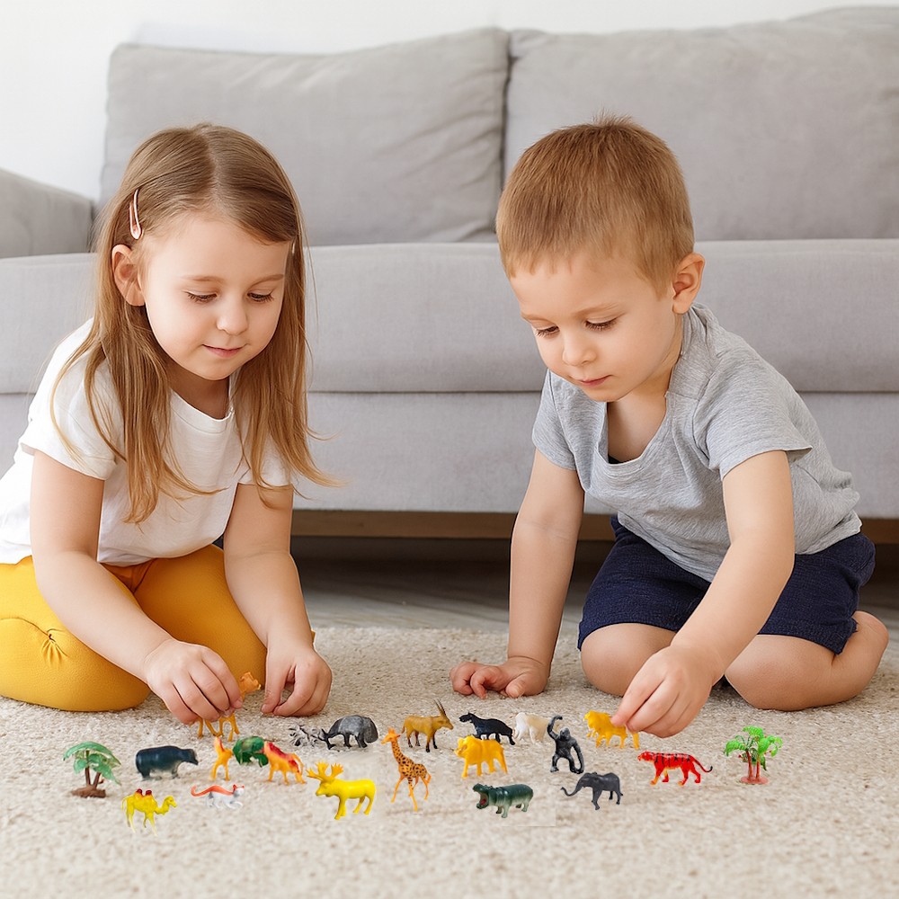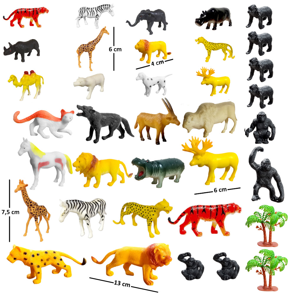 Kit 34 Animais da Fazenda Selva infantil Bichos de Plástico Maciço
