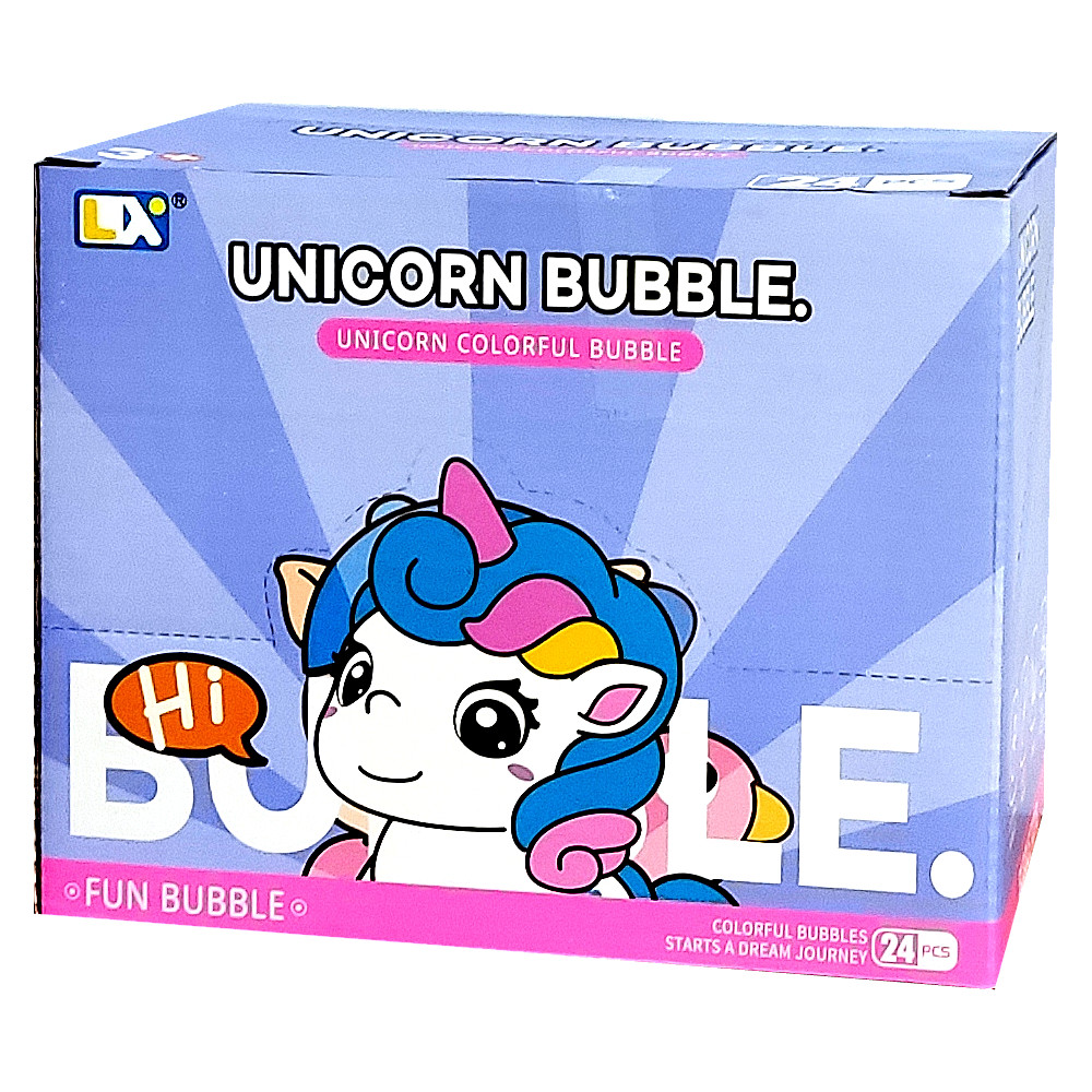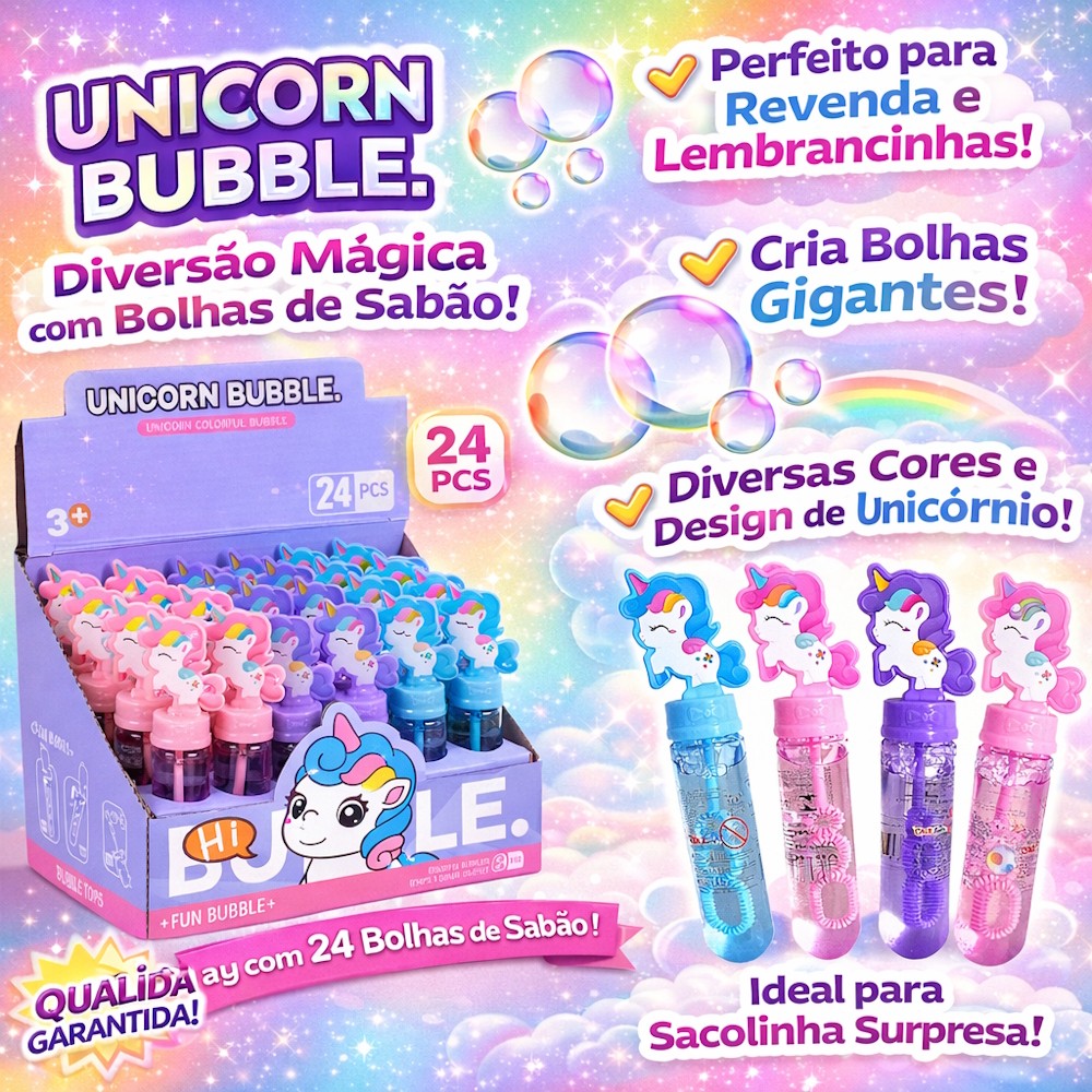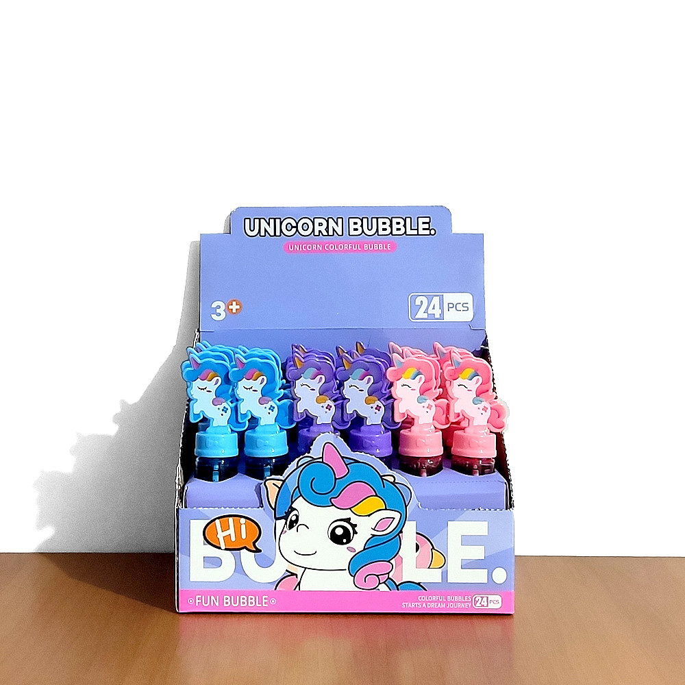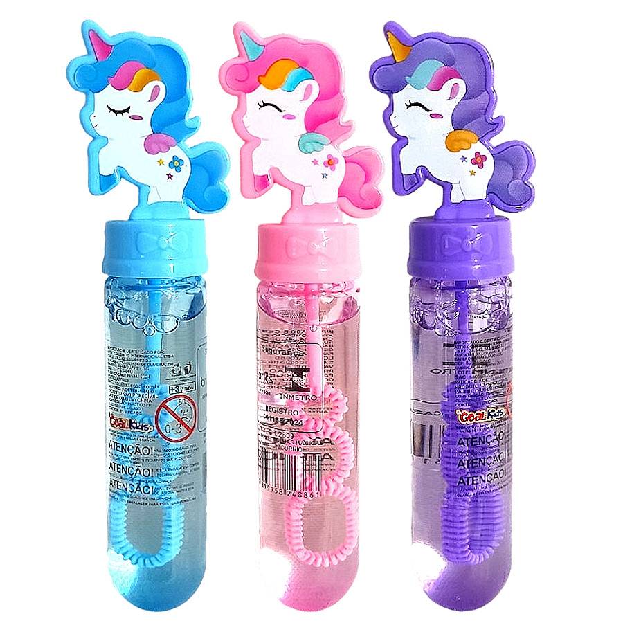 Caixa com 24 tubos de Fazer Bolhas de Sabão Unicórnio Lembrancinha Infantil