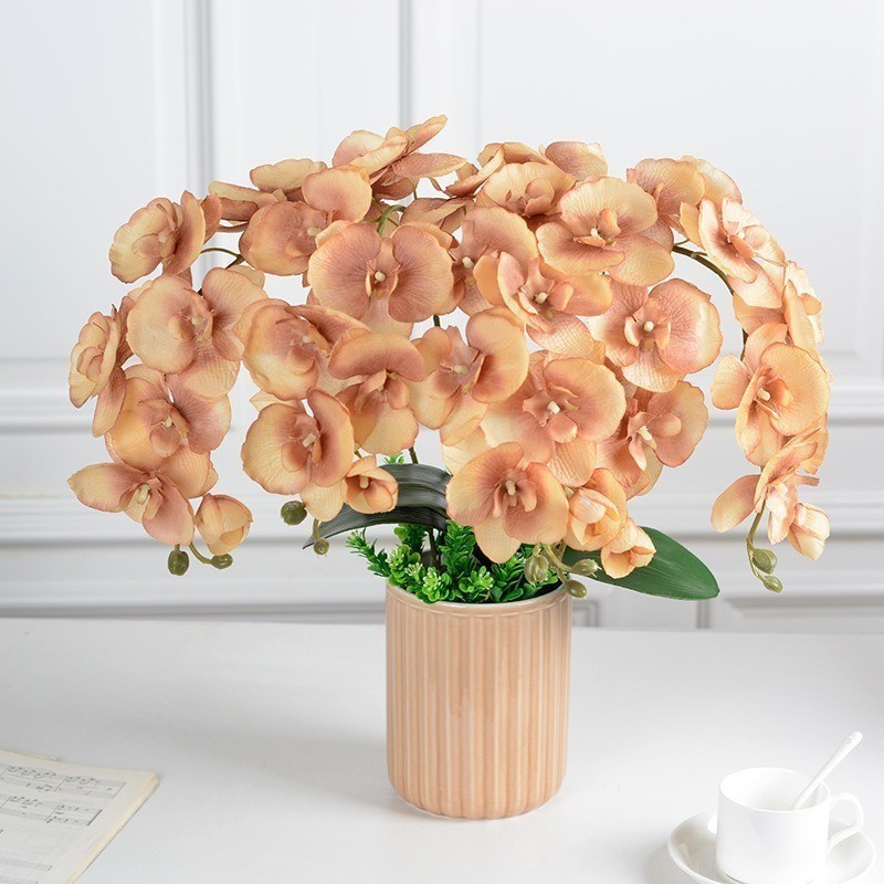 8 cabeças Orquídea Borboleta Artificial Flor De Tecido Não Imitação Phalaenopsis Estilo Europeu Mesa-A-517