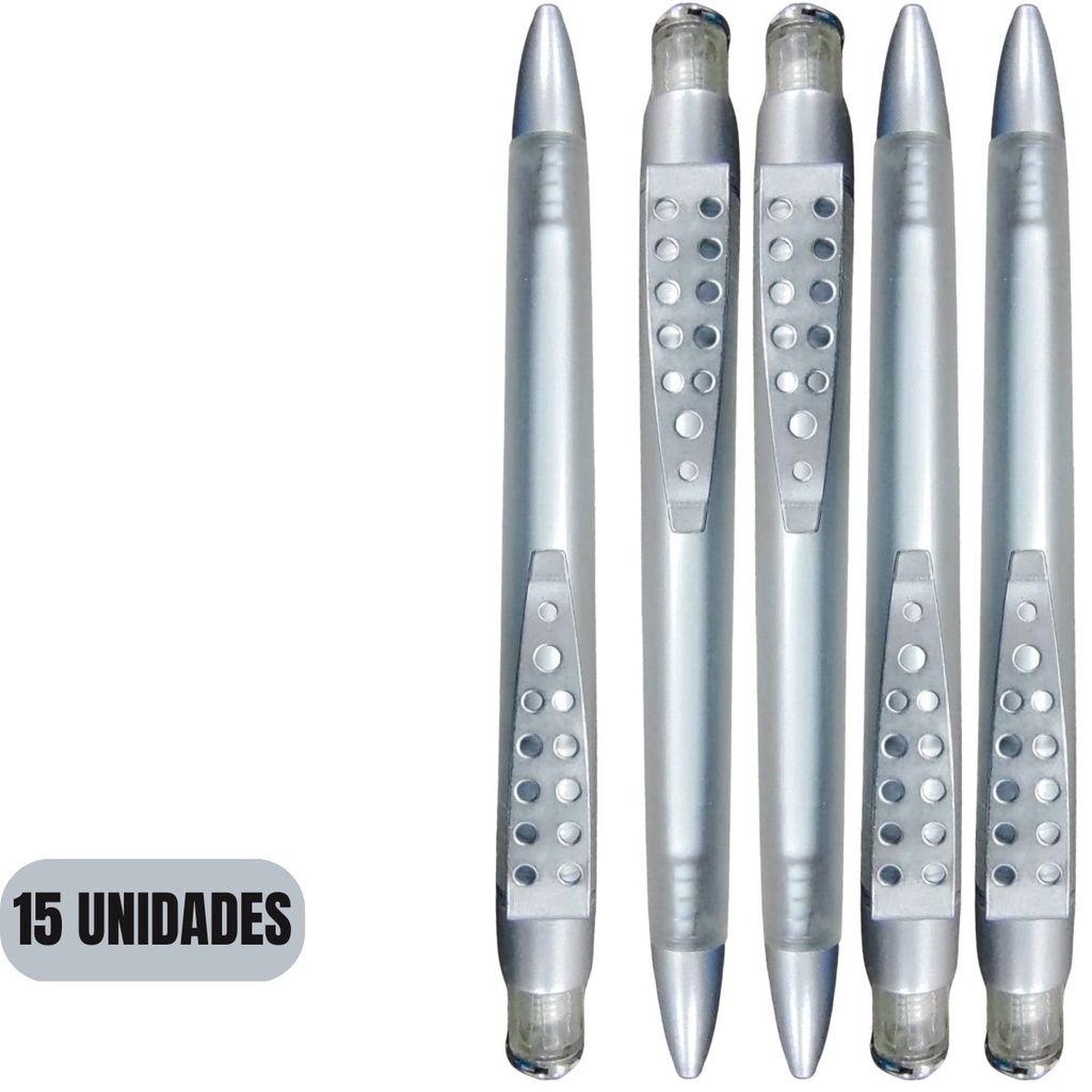 15 Unidades Caneta Transparente Fosca Tinta Azul Click
