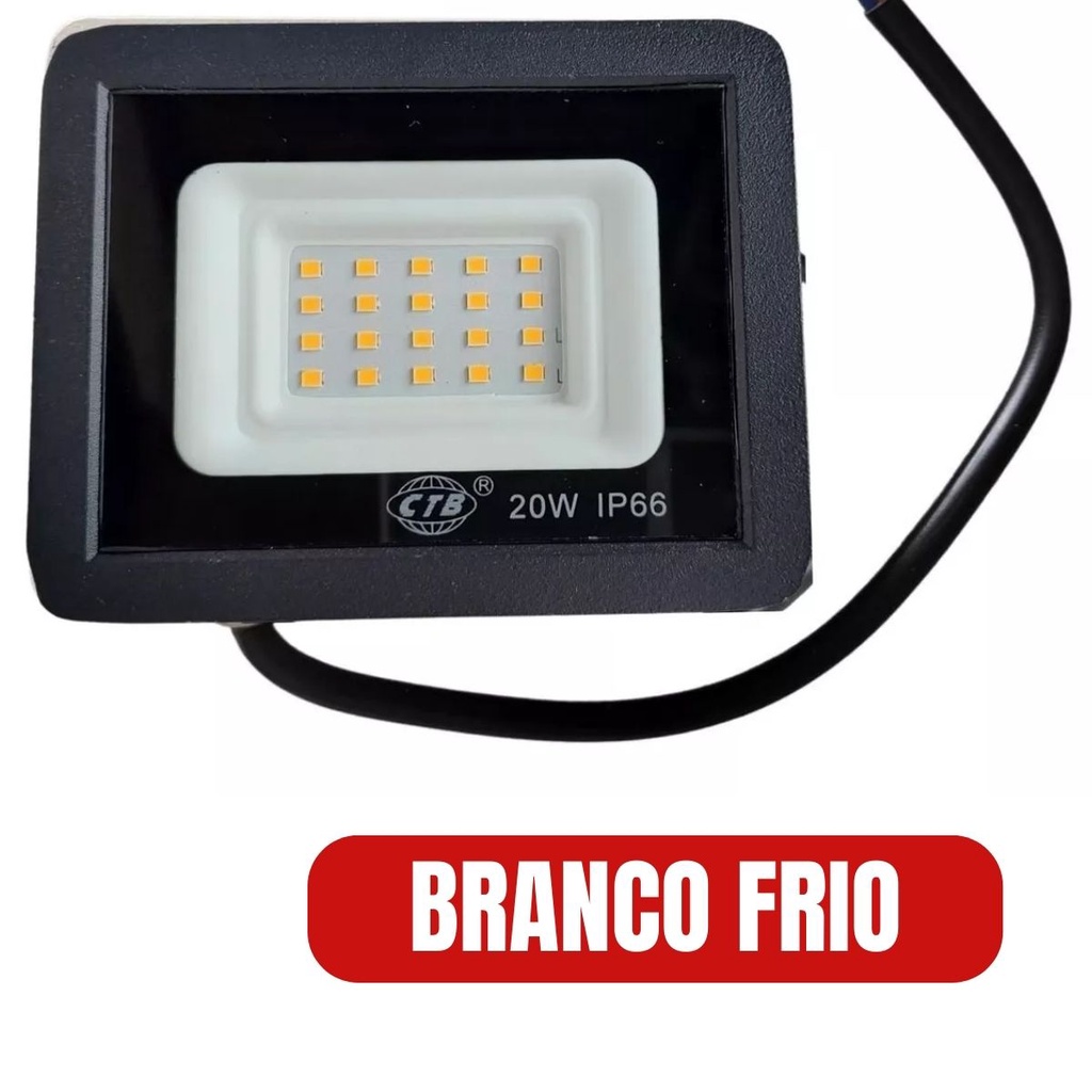 Refletor Led 20w Prova D Agua Ip66 Holofote Branco Frio