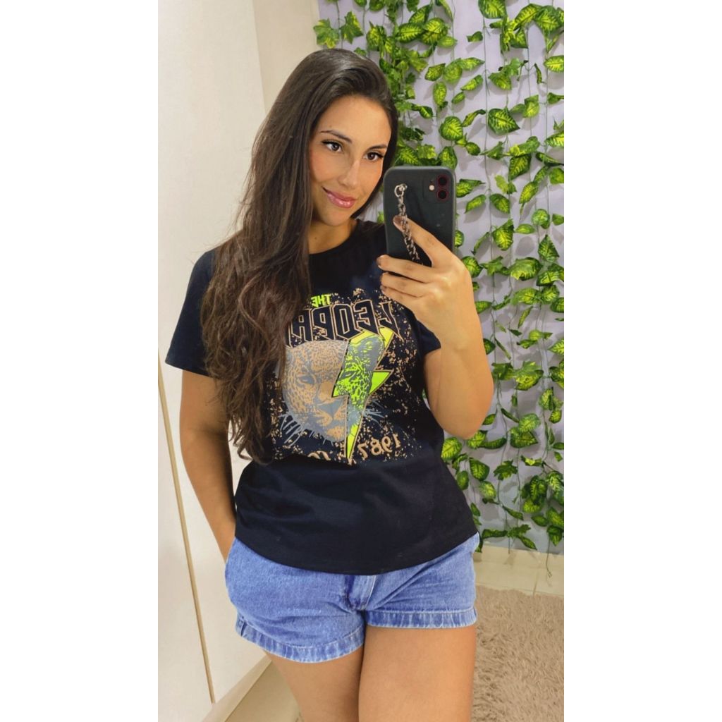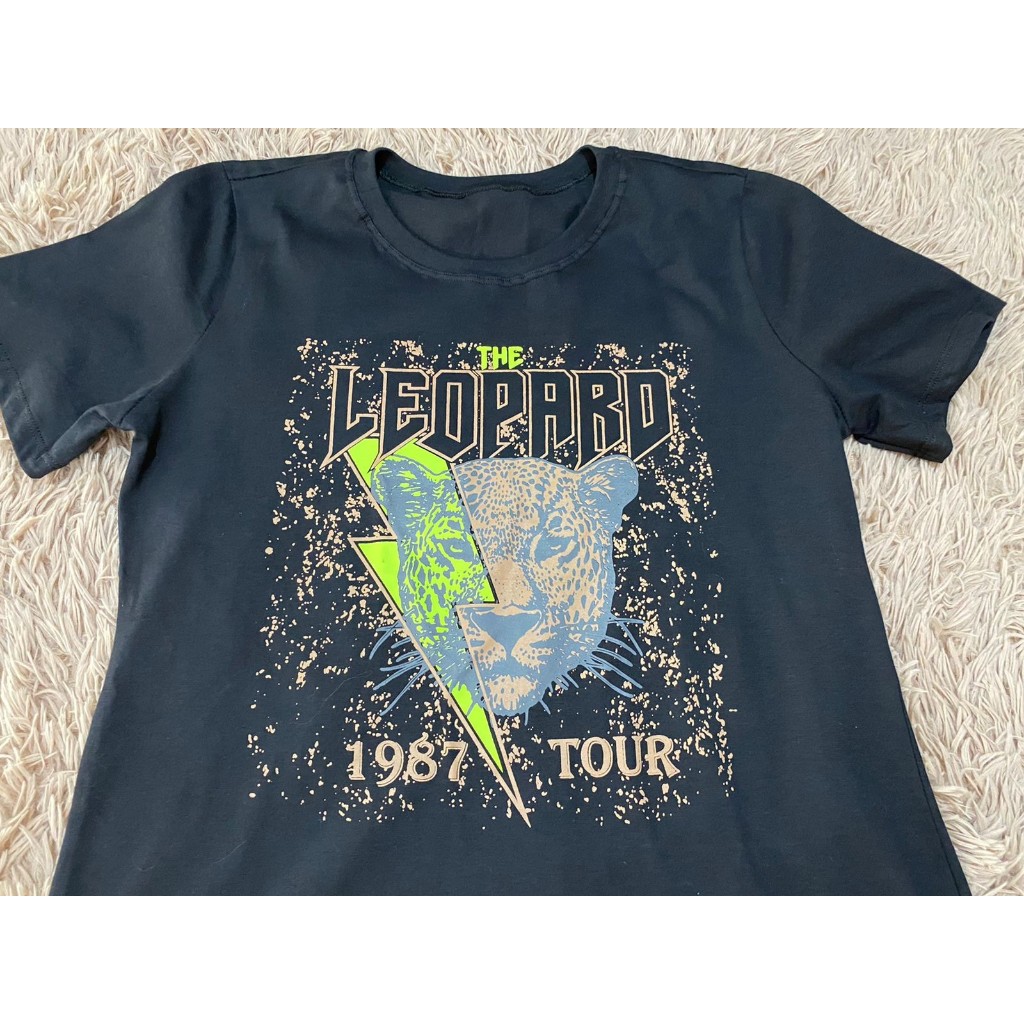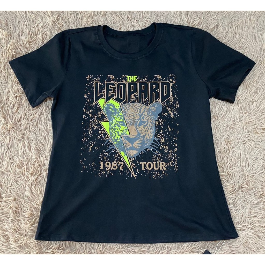 T-shirt Preta Estampada Leopardo Vintage – 100% Algodão – Tamanho M
