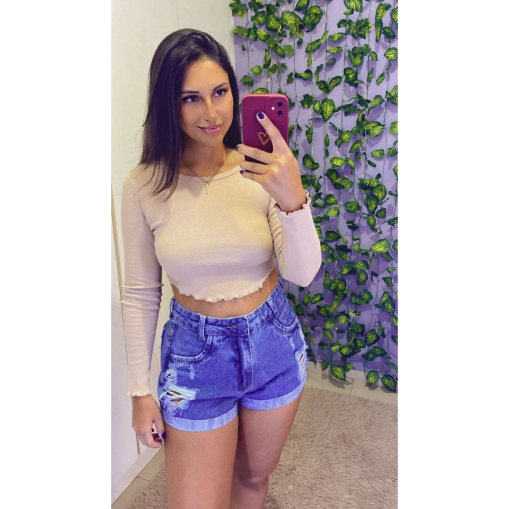 Cropped Canelado Manga Longa – Cor Nude – Tamanho M