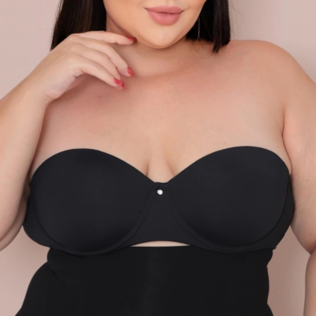 Sutiã Tomara Que Caia Preto Plus Size Feminino Dia a Dia Alça Removível Conforto