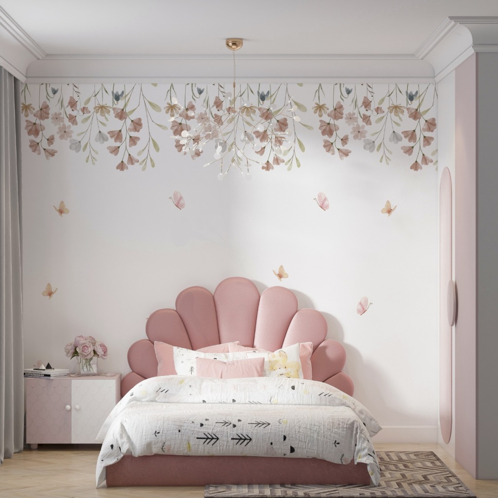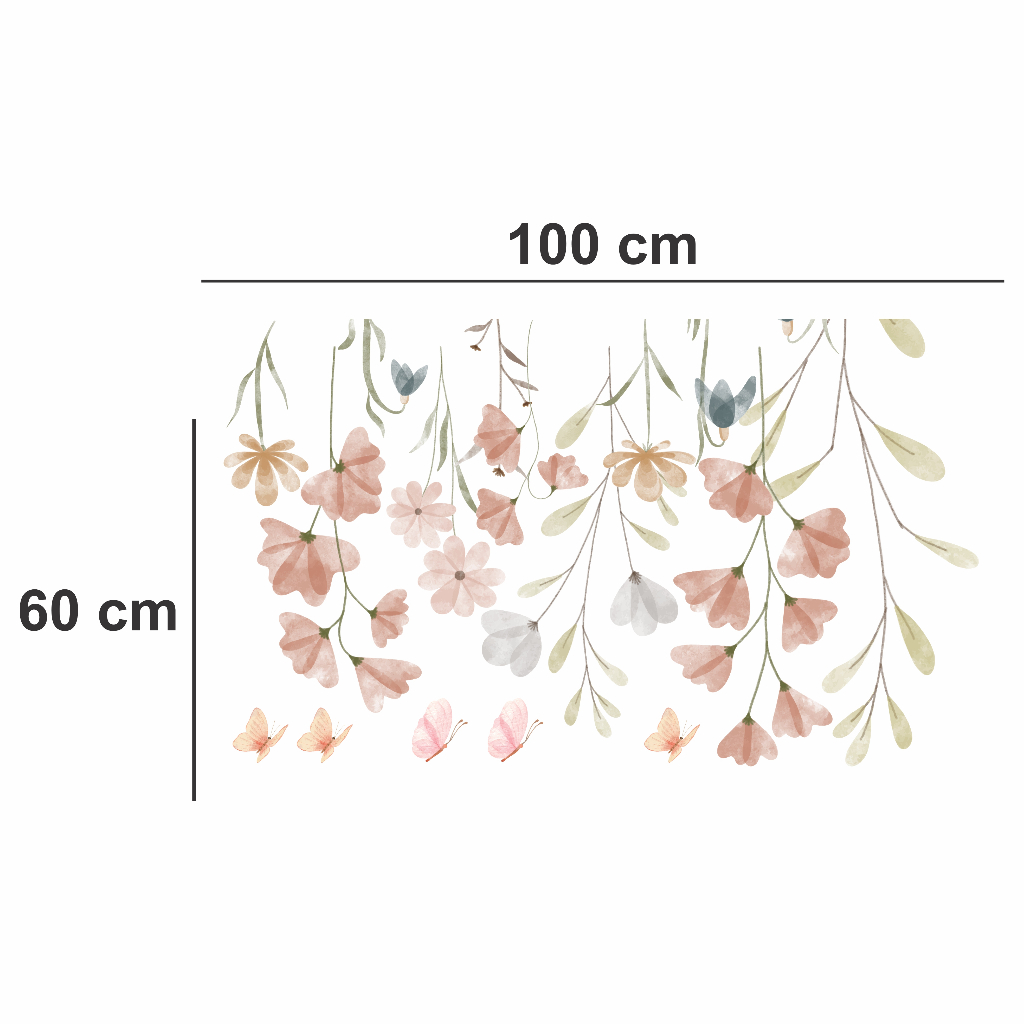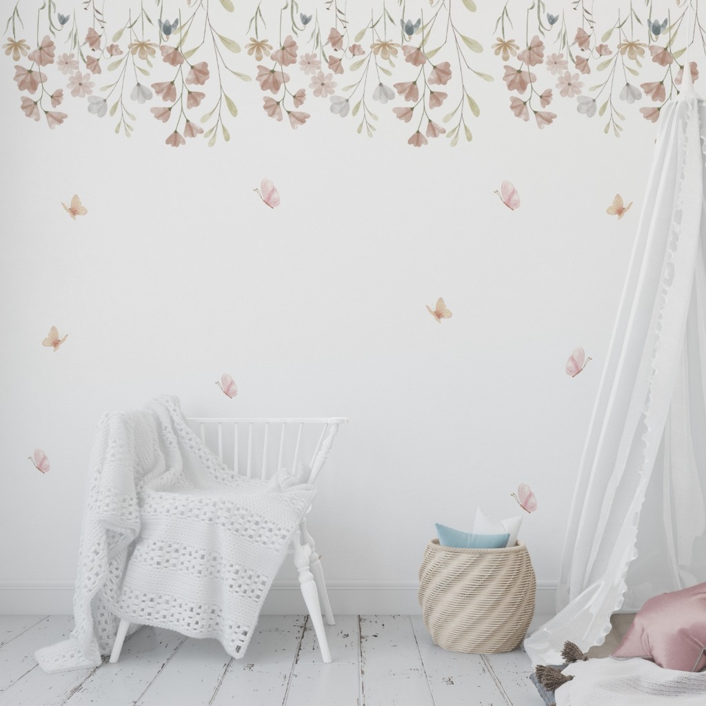 Adesivo de parede infantil em recorte s/fundo flores borboletas rose 1x 60cm Algidecor