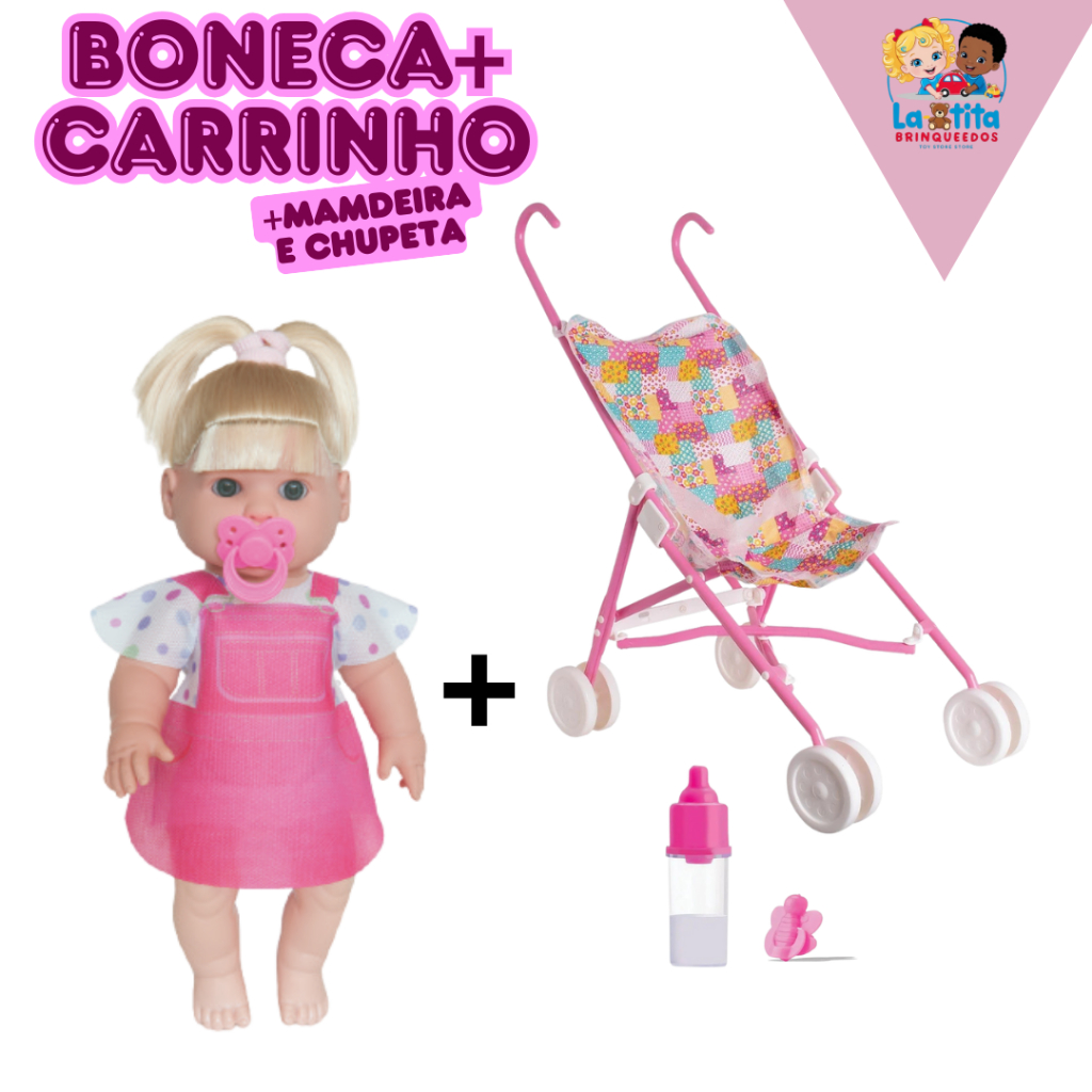 Boneca Com Chupeta Danadinha Loira Crespo Negra Ruiva BonecaMenina Infantil Milk Boneca Com Carrinho