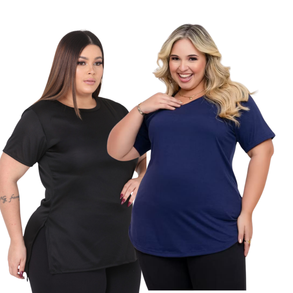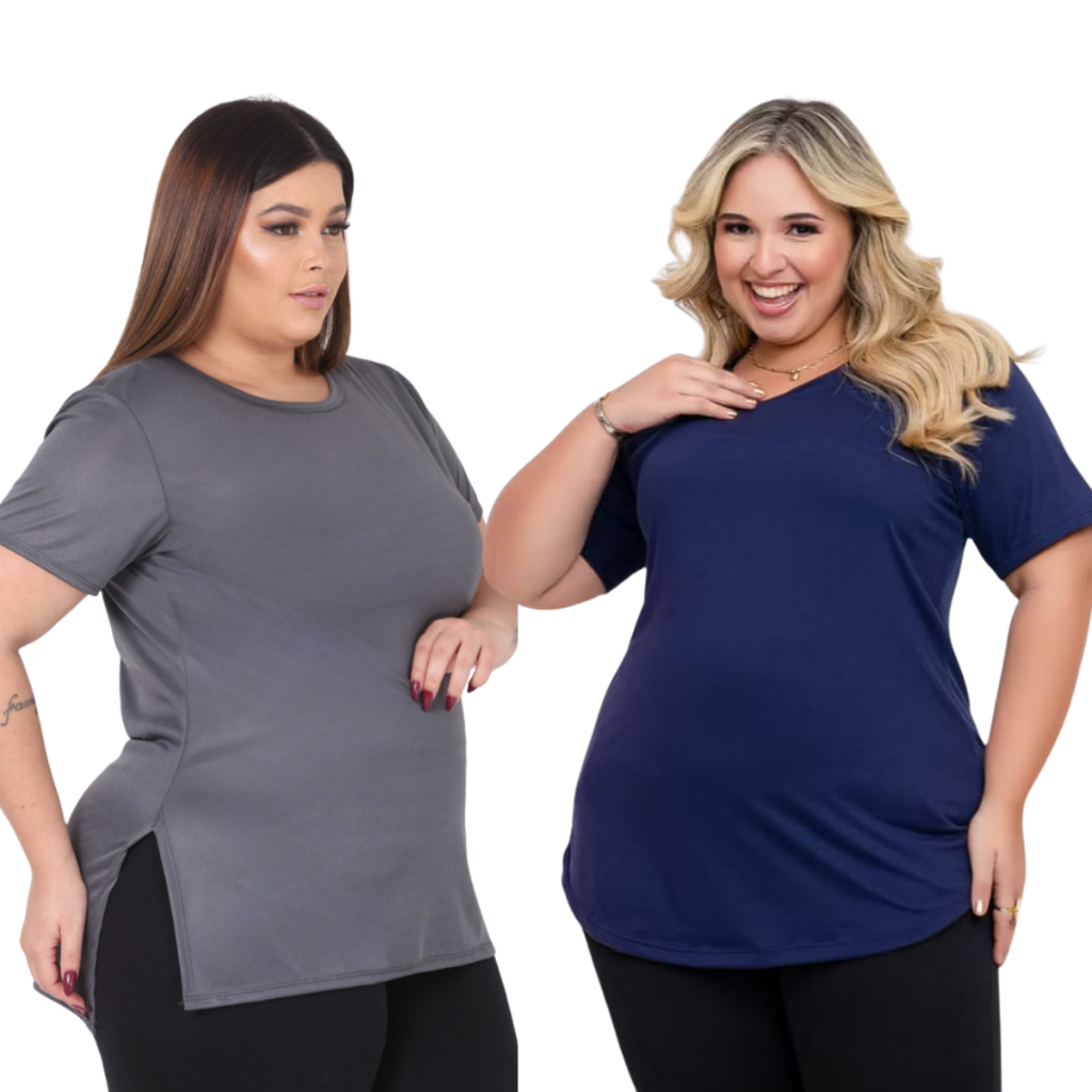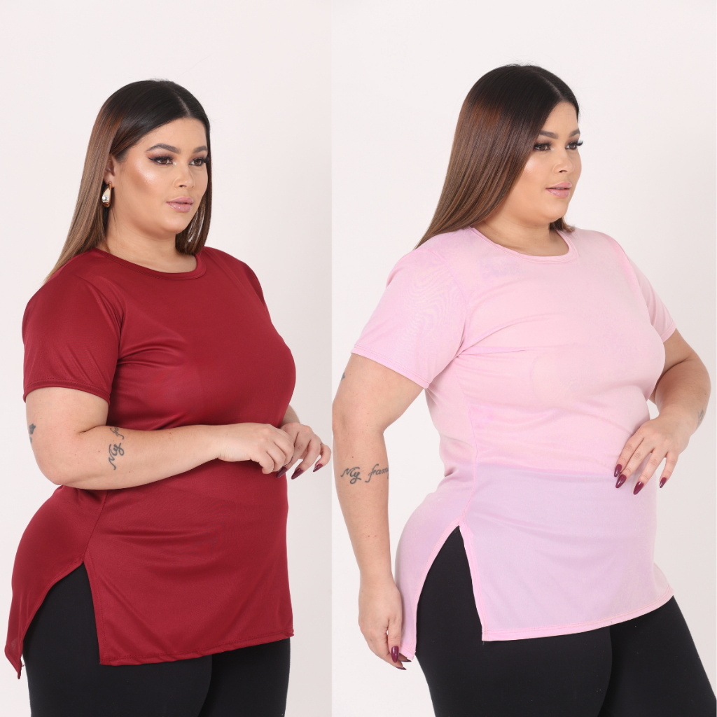 Kit 2 Camisetas Femininas Plus Size Tapa Bumbum Dry Fit Academia Fitness Alongada Treino Legging Confortável