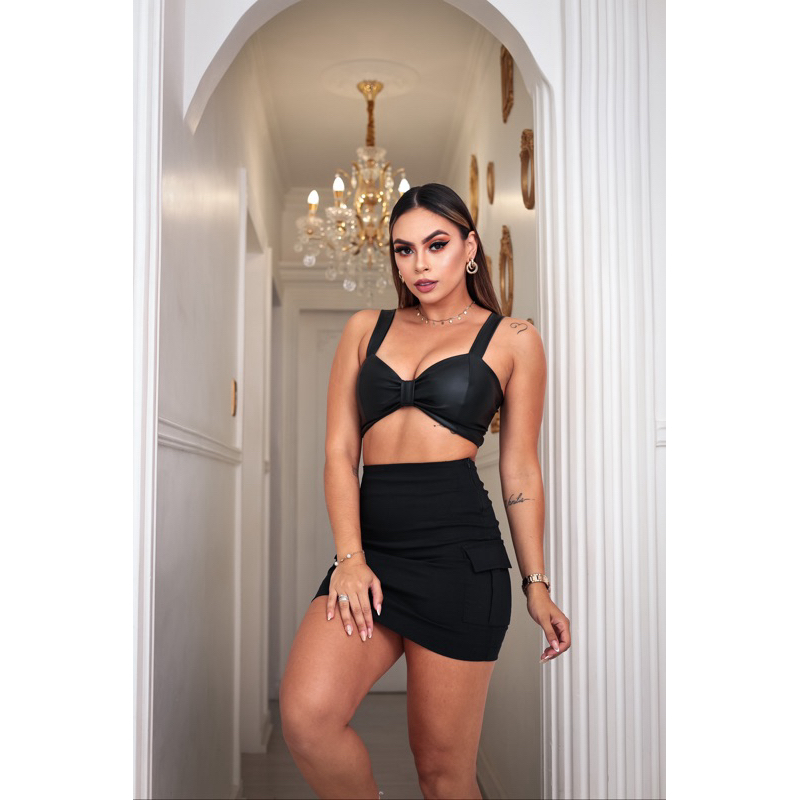 Saia Cargo Bolso Lateral Bengaline Moda Verão
