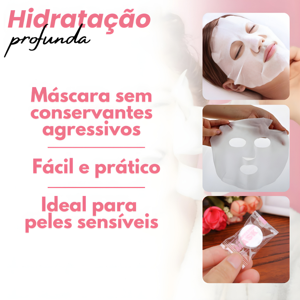 Kit 50 Máscara Desidratada Comprimido Compactada