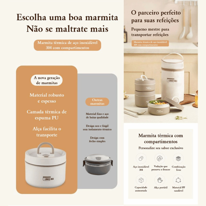Kit 3 Marmitas Térmicas Premium+ Bolsa Térmica Para Viagem