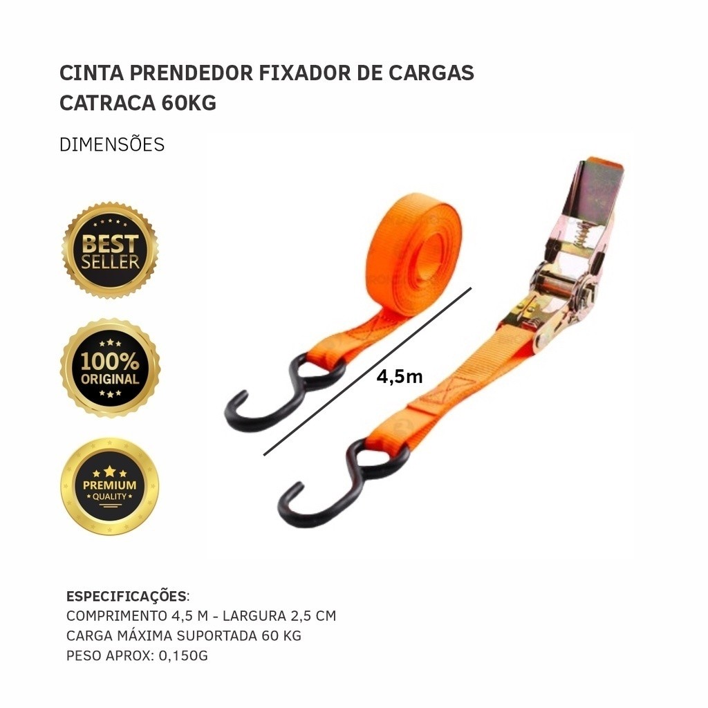 Cintas com Catraca 25 mm × 4,5 m para Carga Amarração Fita Prendedor Forte para Caminhão Moto Carro