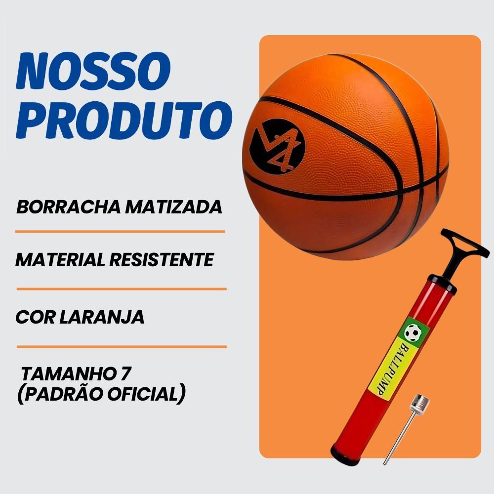 KIT BOLA DE BASQUETE TAMANHO OFICIAL PRO 7 COM BOMBA DE AR, COM BICO