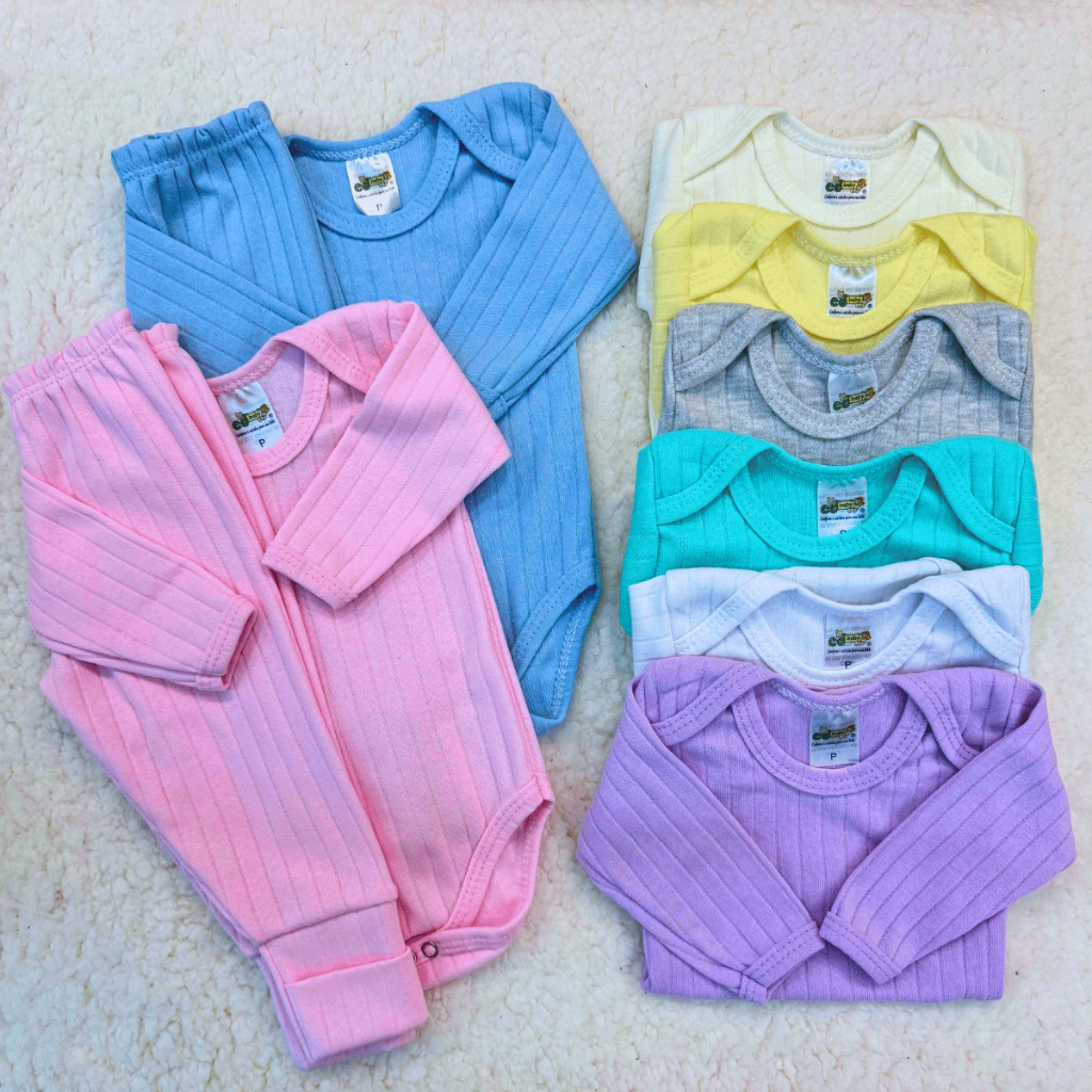 Kit 1 Conjunto 2 Peças Menina Menino Liso Premium 100% Algodao Primavera Verao Cores Pasteis Bebe