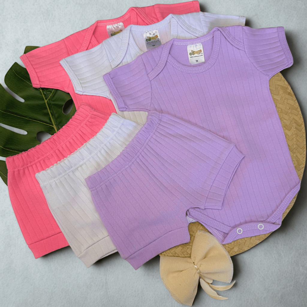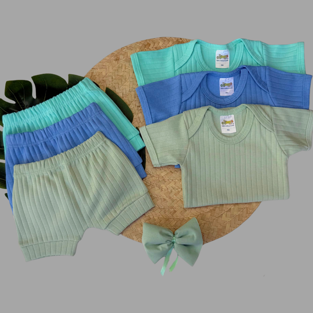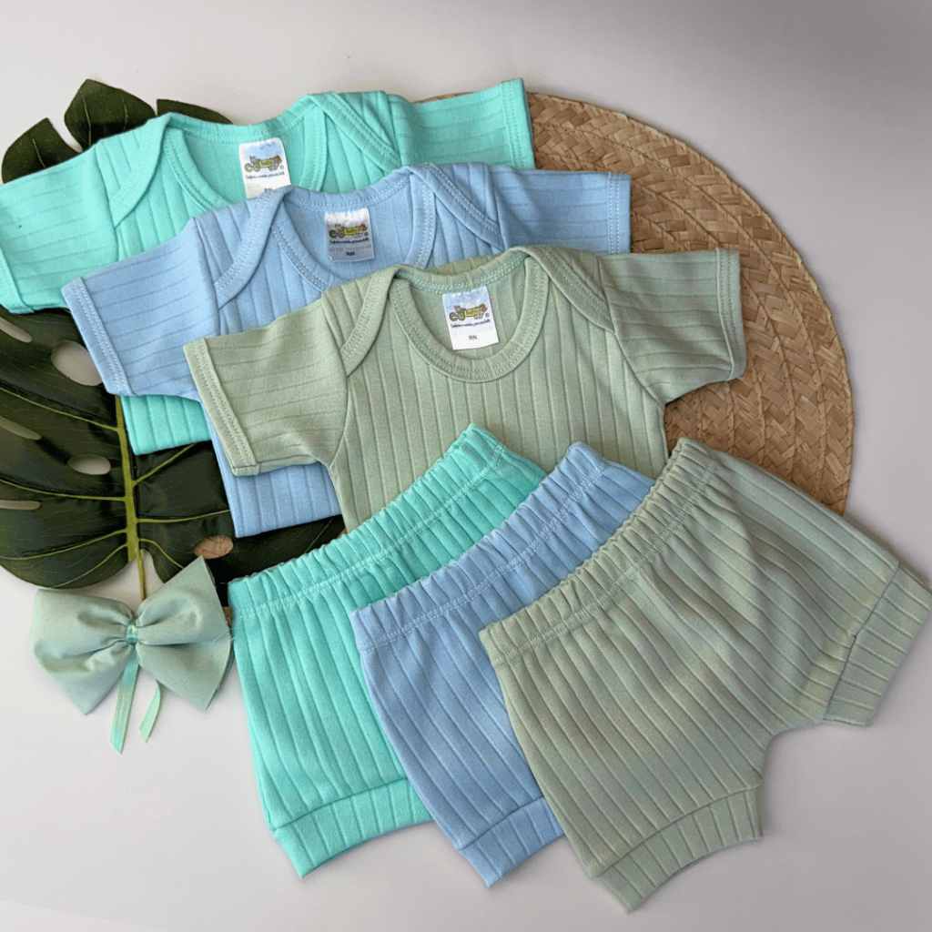 Kit 6 Peças 100% Algodao Body Manga Curta + Tapa Fralda Menina Menino Verao Meia Estacao Premium Canelado