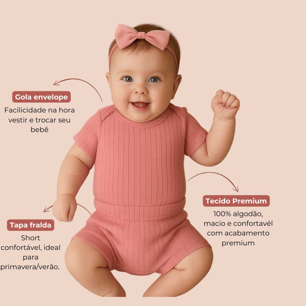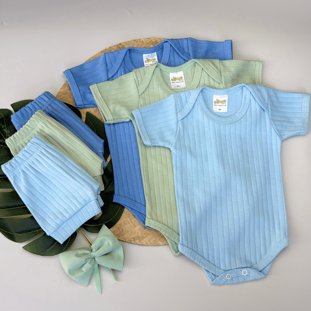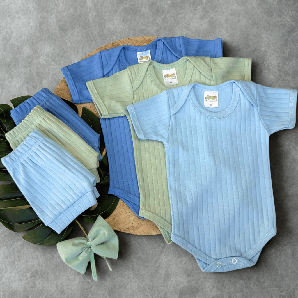 Kit 6 Peças 100% Algodao Body Manga Curta + Tapa Fralda Menina Menino Verao Meia Estacao Premium Canelado