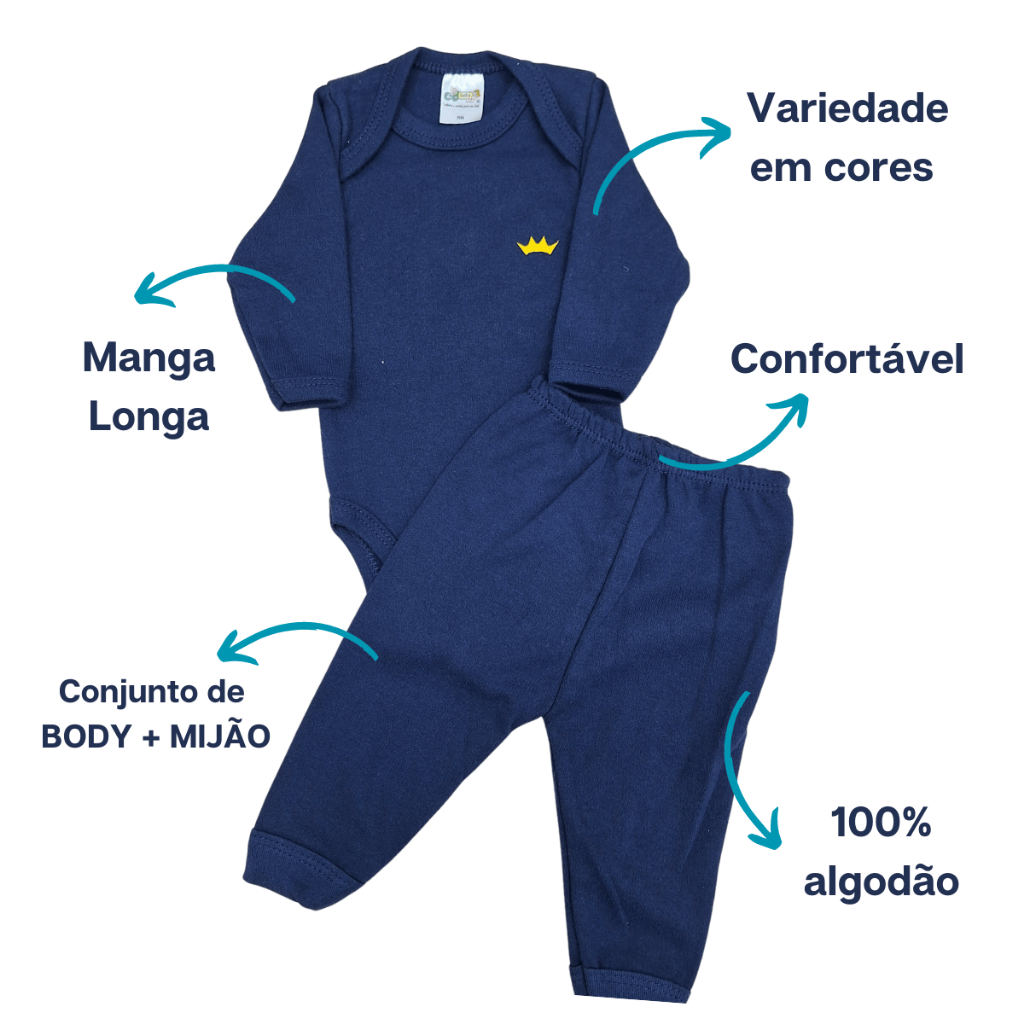 Kit 6 Peças Body Mijao Bebe 100% Algodao Menino Menina Primavera Outono Lisas 3 Body 3 Mijao Suedine