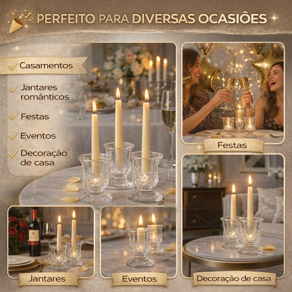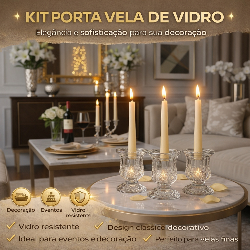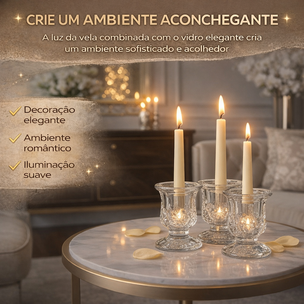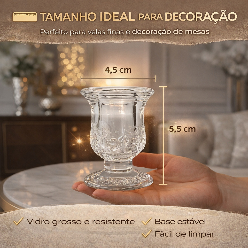 Kit Porta Vela Castiçal De Vidro Resistente Decoração Festas Eventos