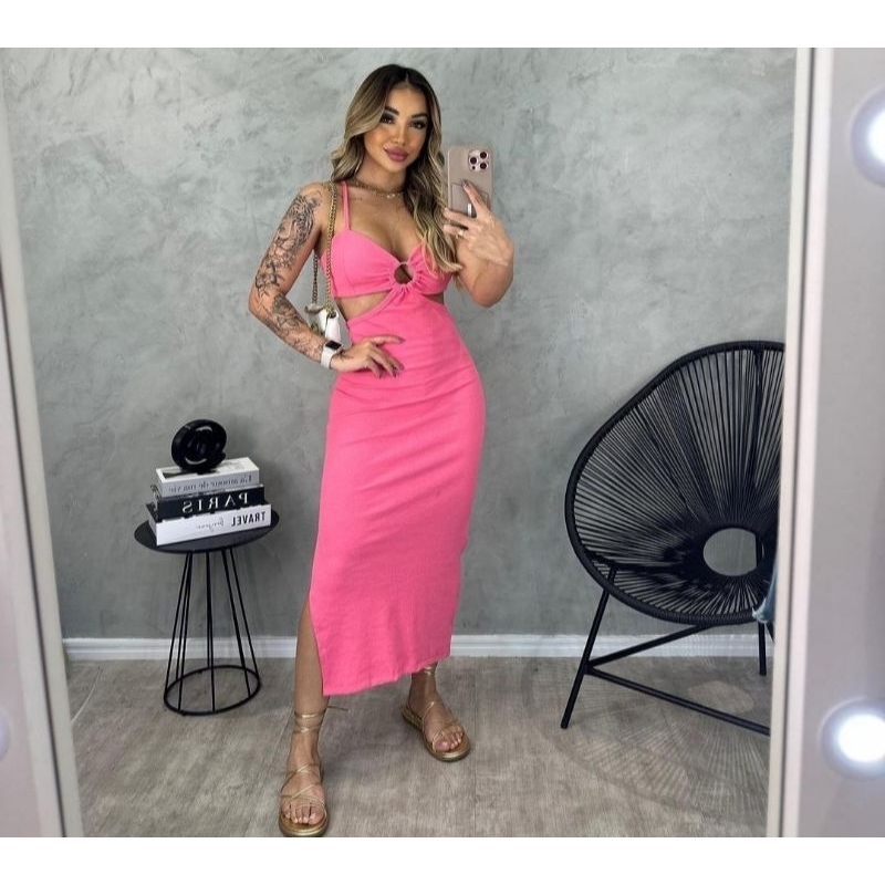 Vestido Feminino Midi Argola (TECIDO RIBANA algodão PRIME)
