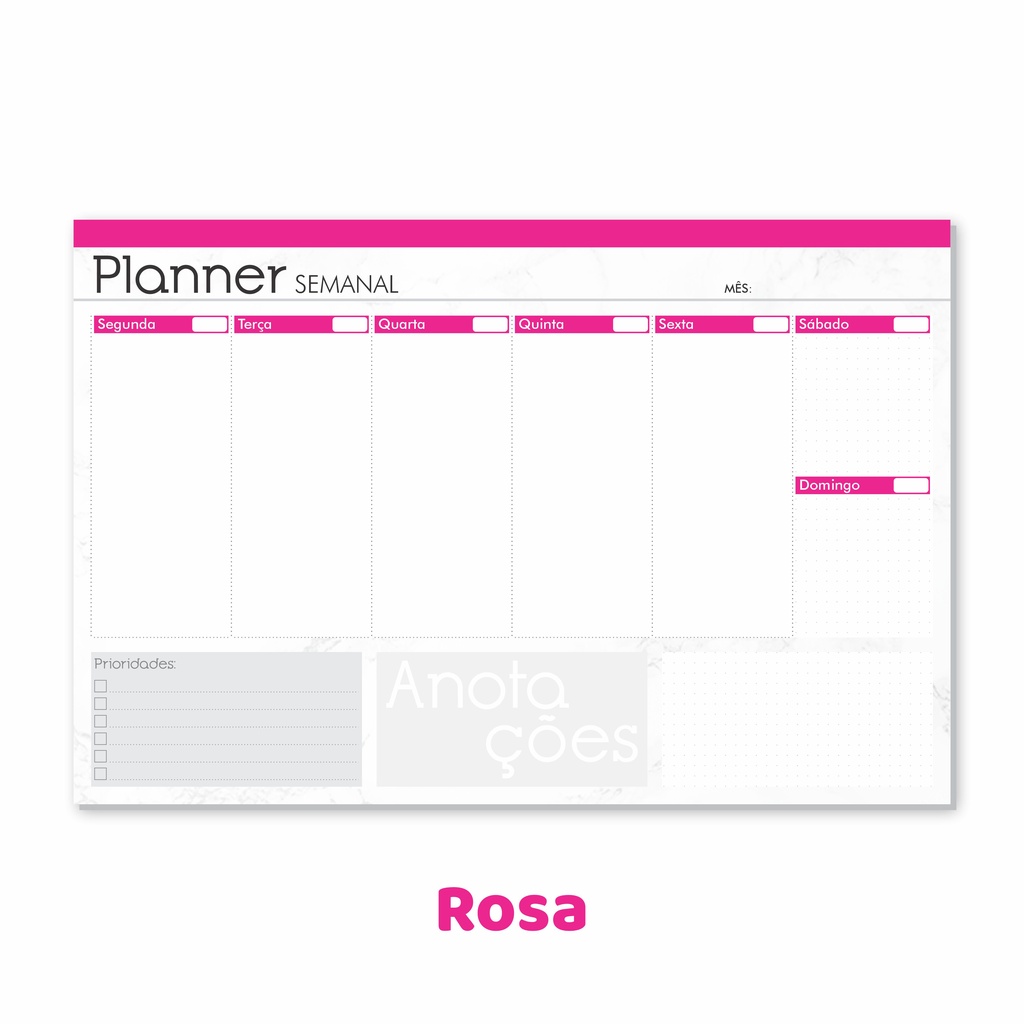 Planner Semanal de Mesa com 52 Folhas Planejamento