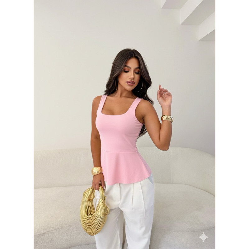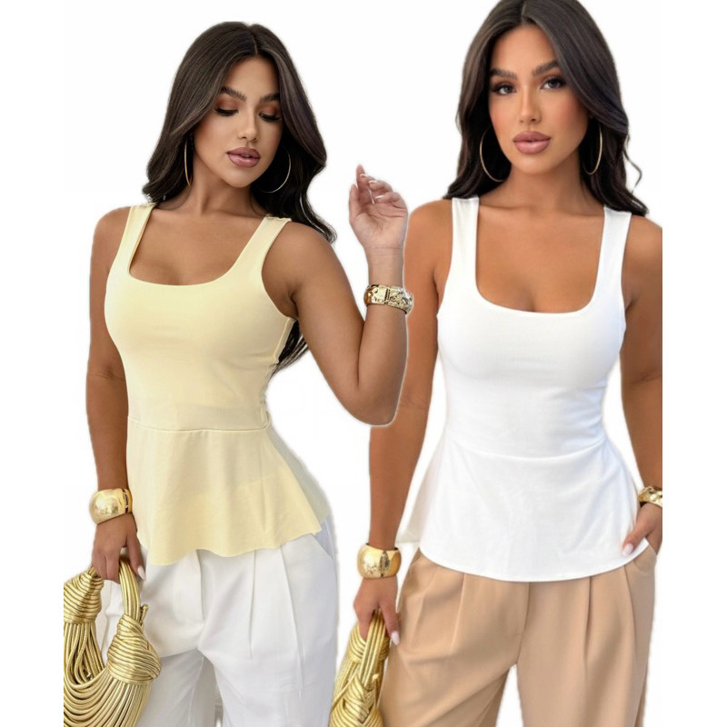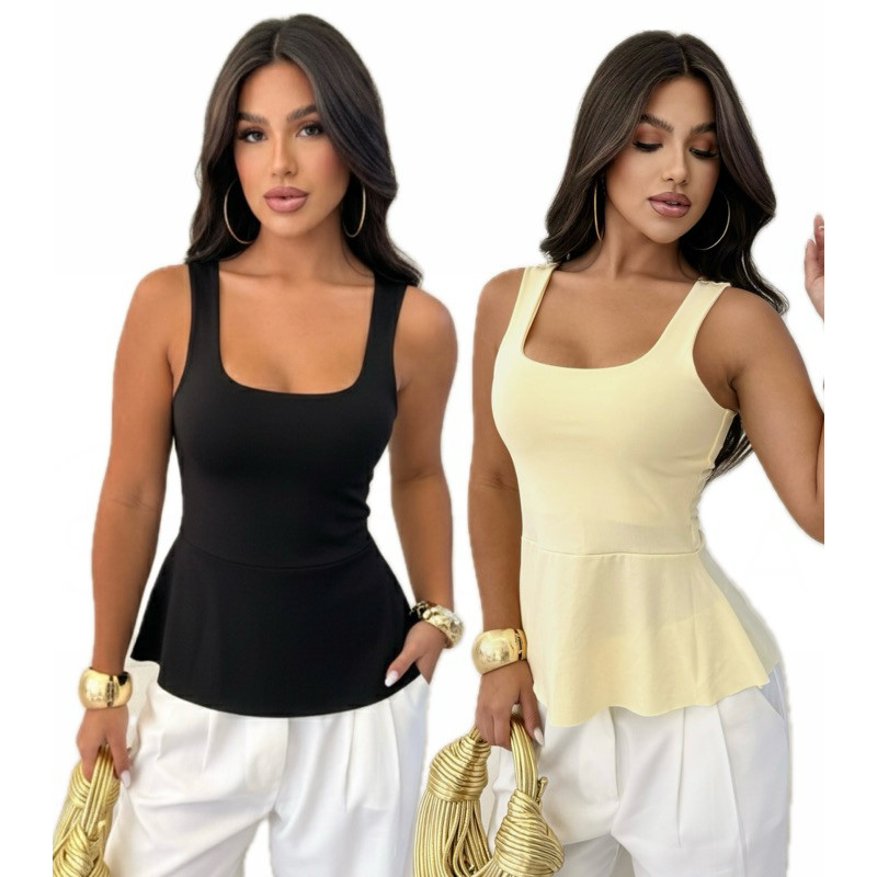Kit 2 Blusa Regata Bata Feminina Peplum Suplex Cintura Marcada Básica Estilosa Moda Social Casual Elegante Verão