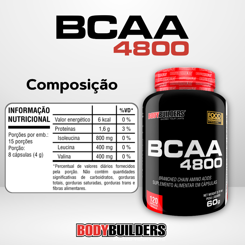 BCAA 4800 120 Cápsulas - Rápida Absorção - Bodybuilders