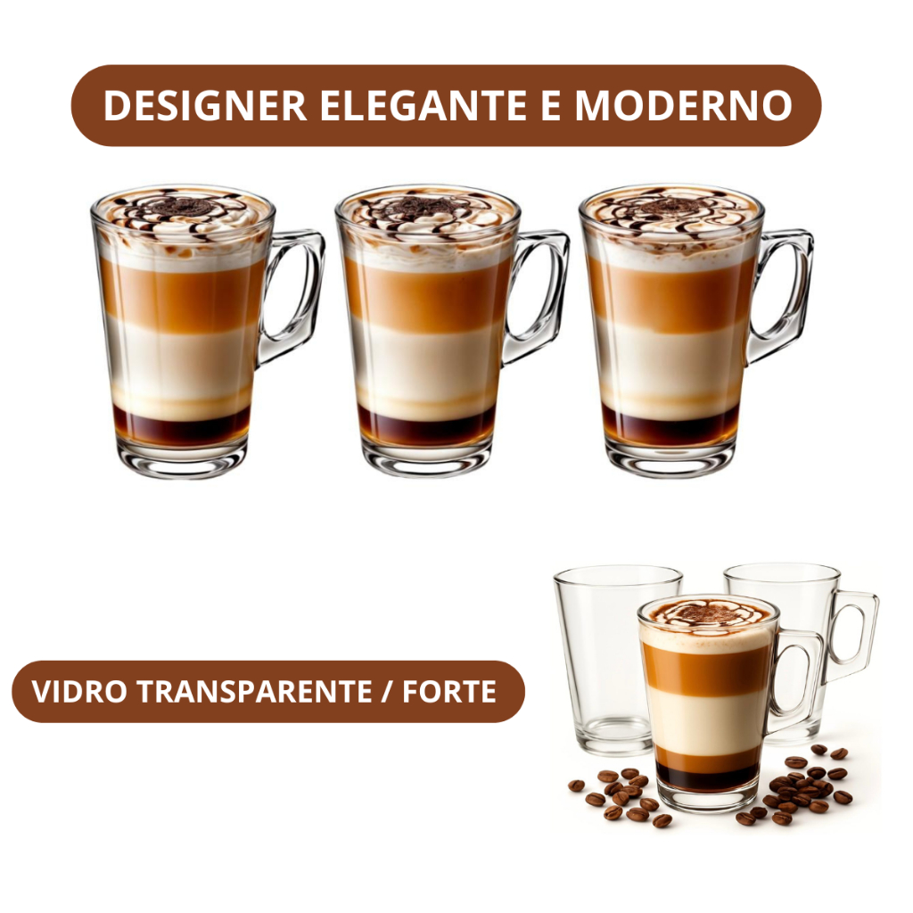 Jogo 3 ou 6 Peças Canecas Capuccino Nespresso Em Vidro Coffee 185ml Chocolate Café Nespresso