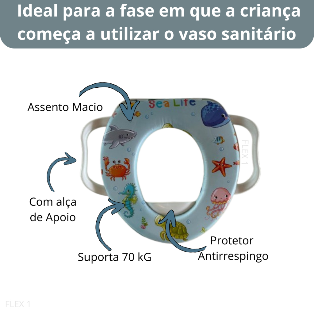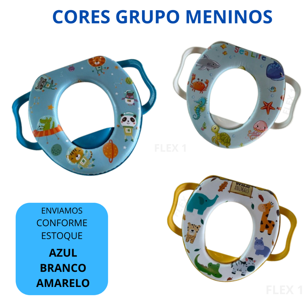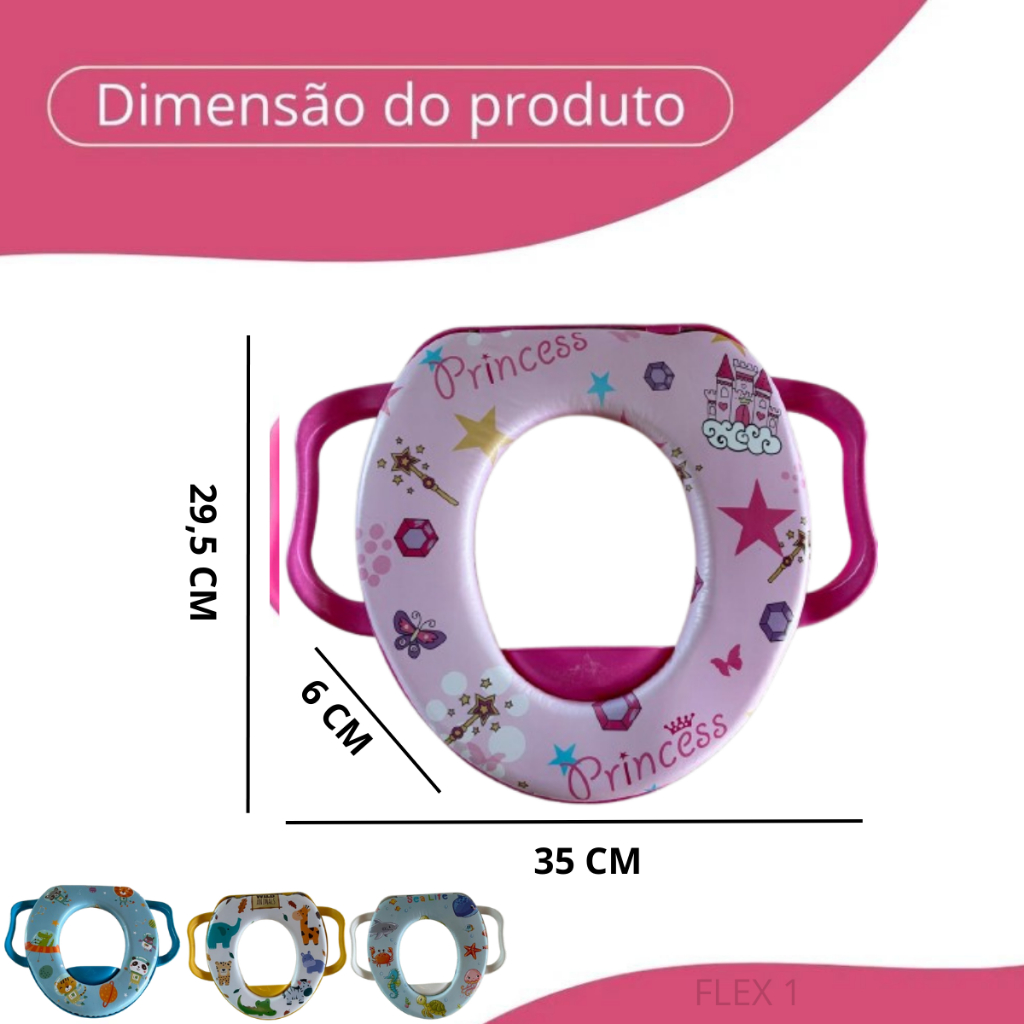 Assento Sanitário Redutor Vaso Infantil Com Alça de Segurança Almofadado Confortável Estampas Diversas